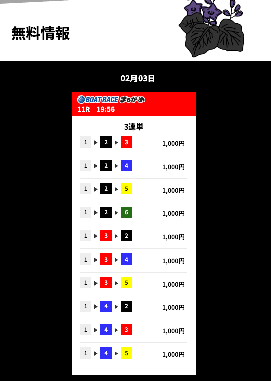 | 11/12 | 丸亀8R | 的中 | 13,350円 |  |