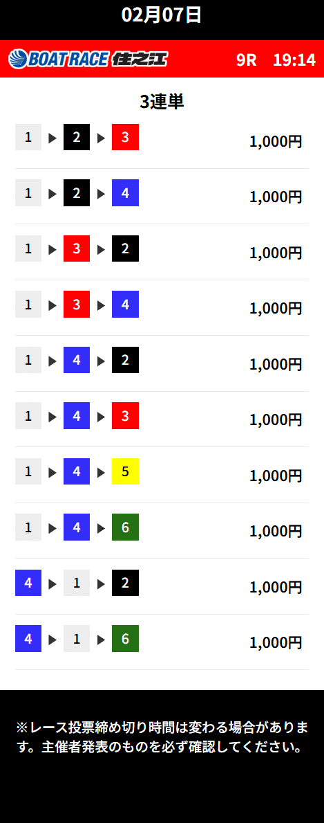 実際に参加した結果を基に、花舟の買い目を分析していきます。