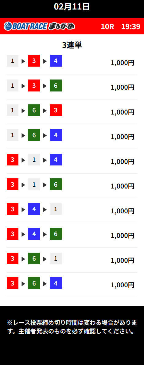 スタート展示では内枠3艇が大きく遅れていた。それも踏まえると、正直理解できない買い目だな⋯。