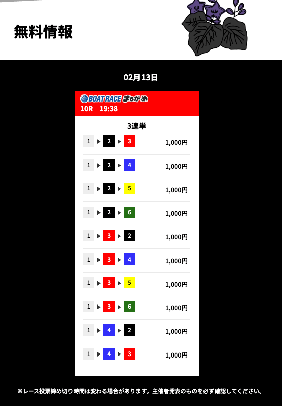 | 11/13 | 若松10R | 的中 | 13,000円 |  |