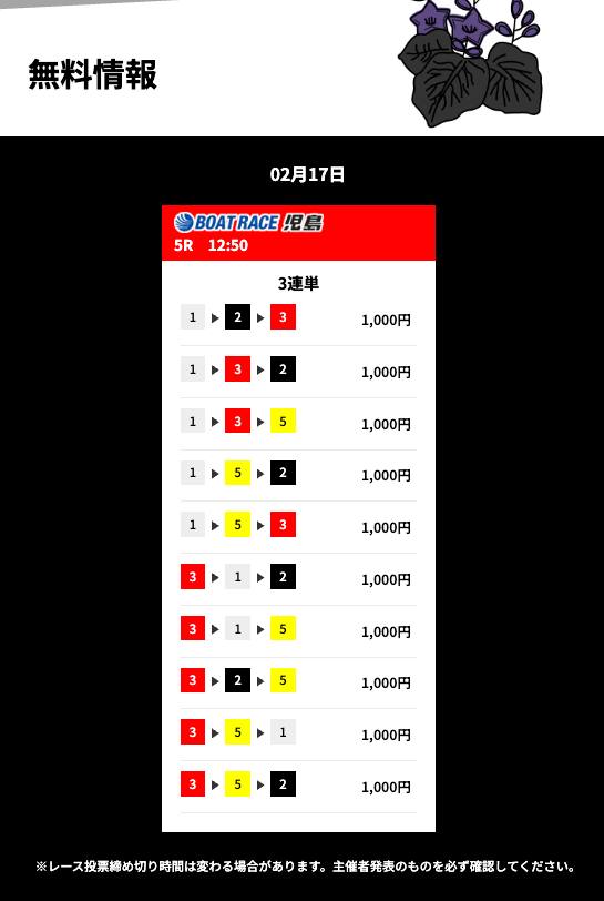 - 舟券代が1万円のため1回の不的中のリスクが大きい(無料予想)