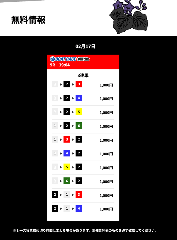 有料予想に参加する際は、登録特典の1万円分のポイントを使うのを忘れずにな。