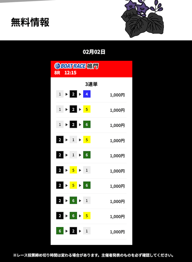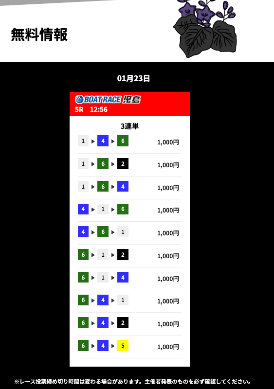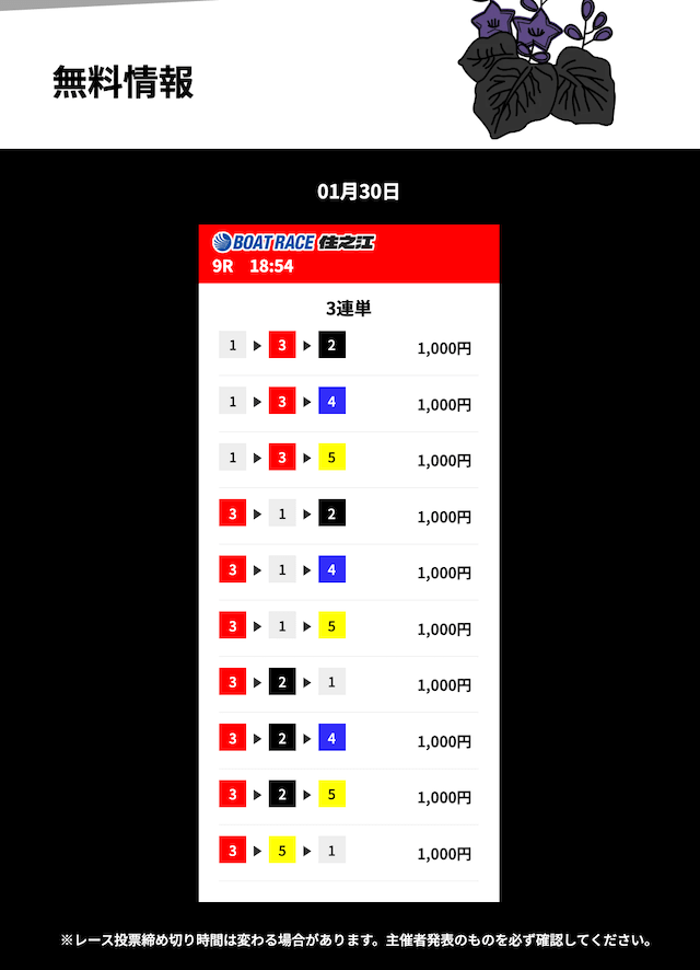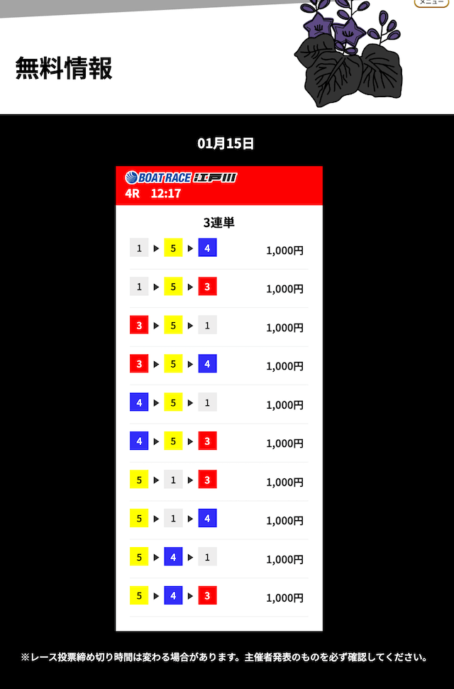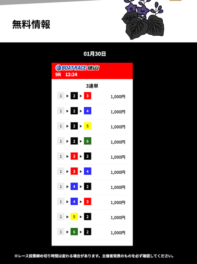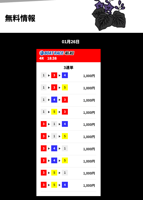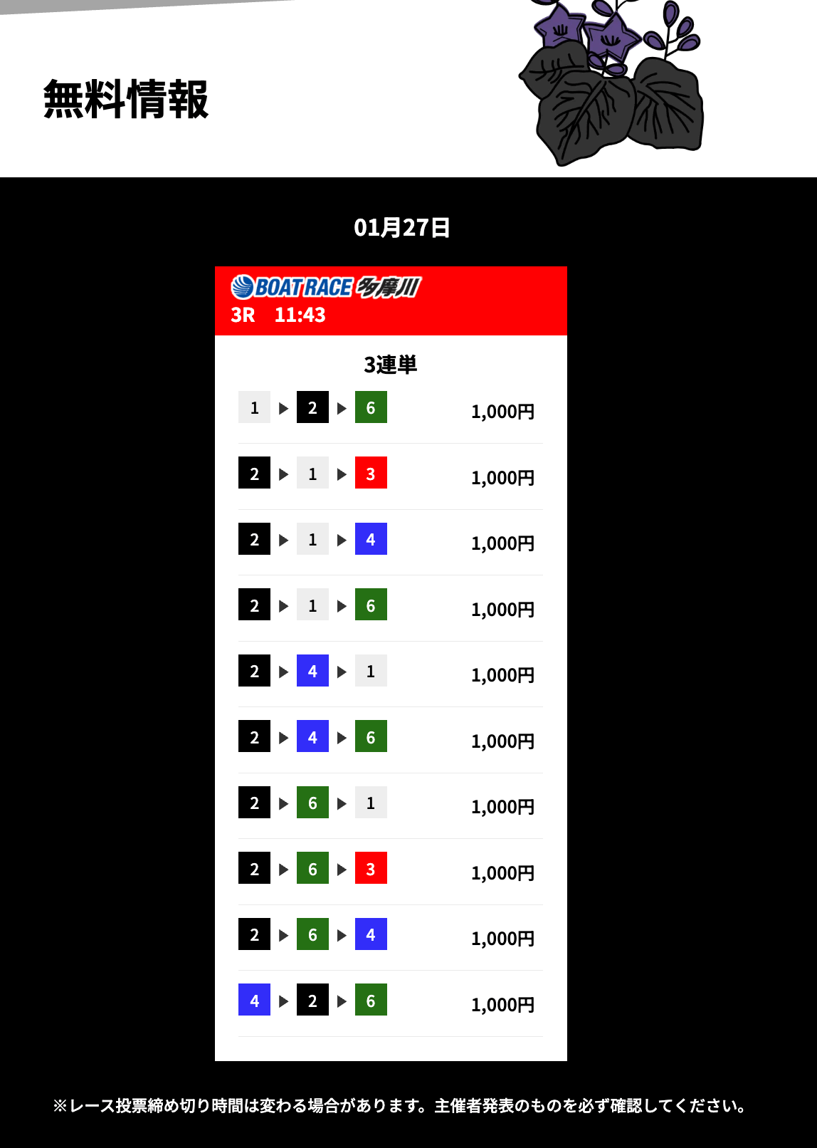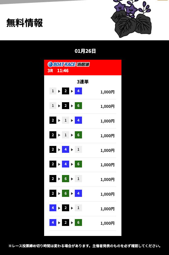有料予想に参加する際は、登録特典の1万円分のポイントを使うのを忘れずにな。