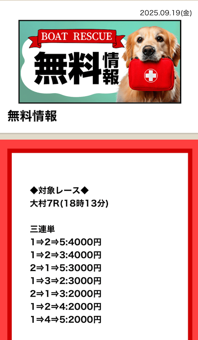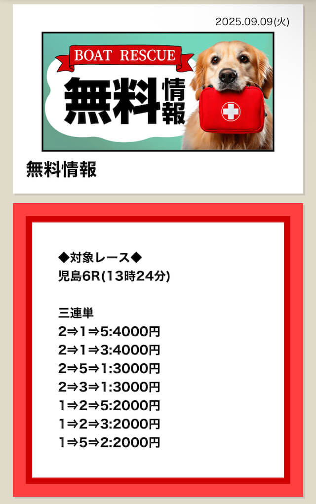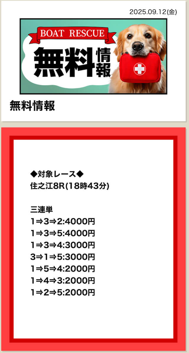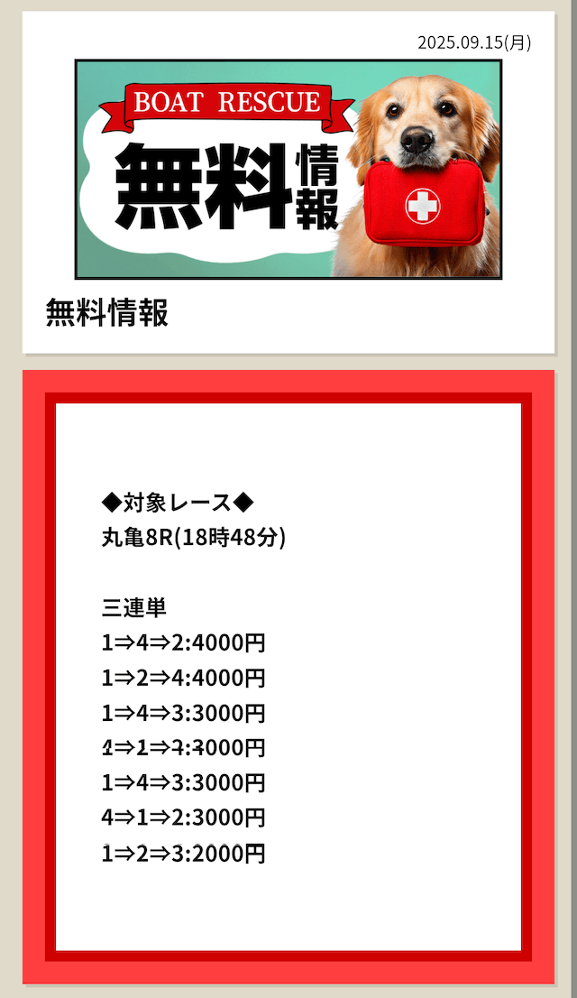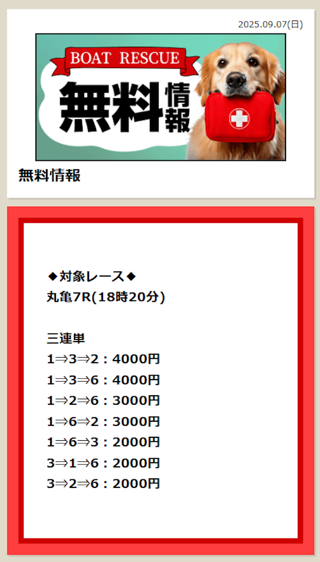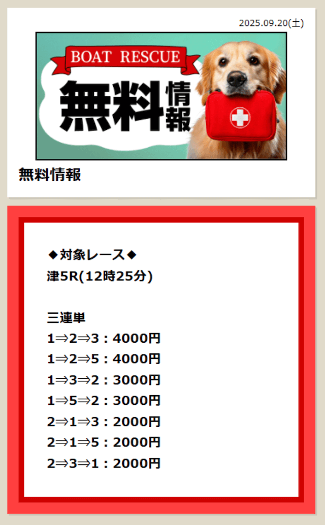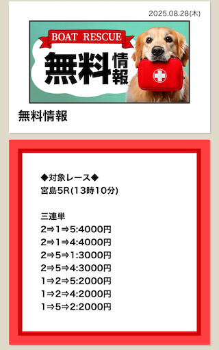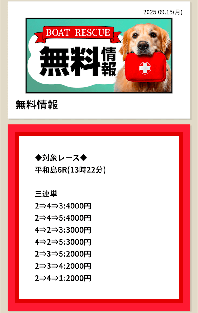 2025/7/15 ポイント情報 情報料金+舟券代 10,000円+20,000円 |