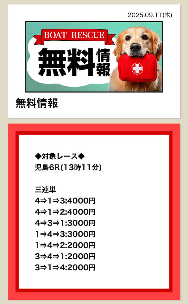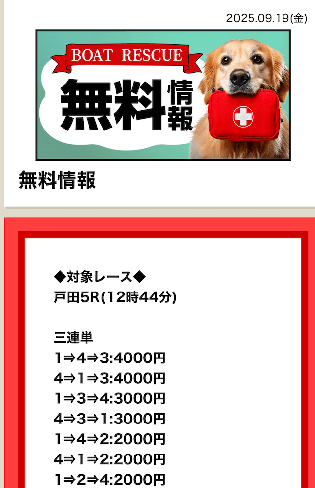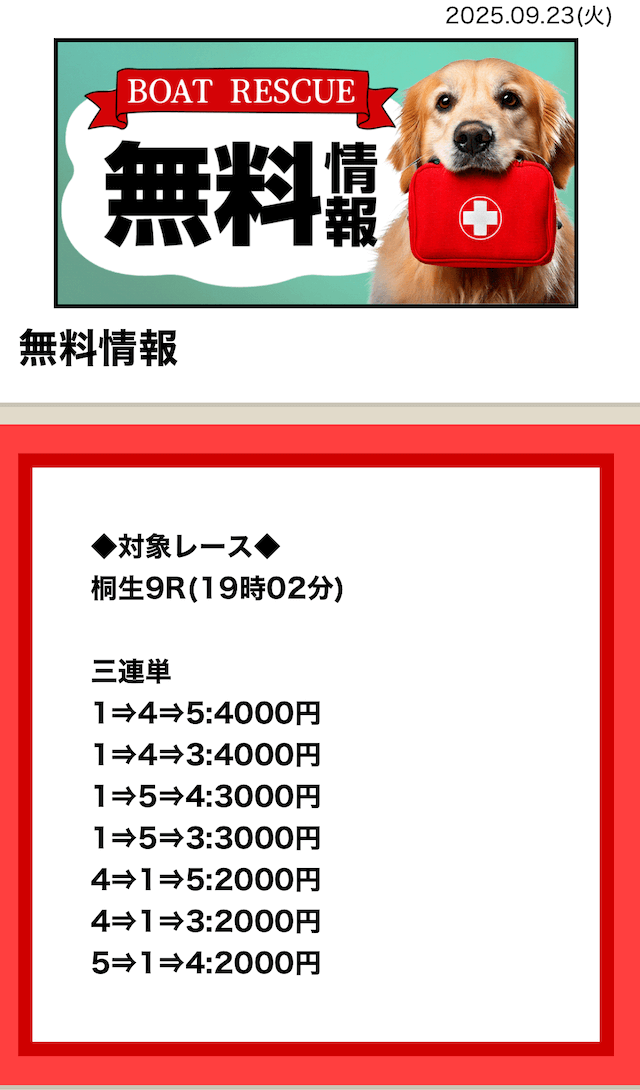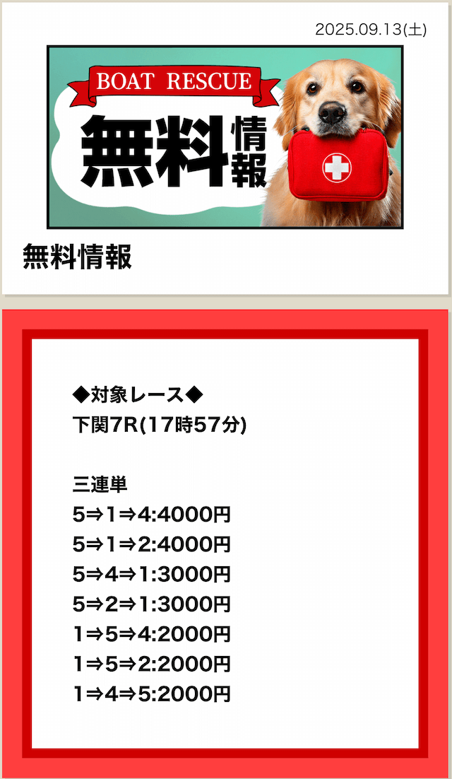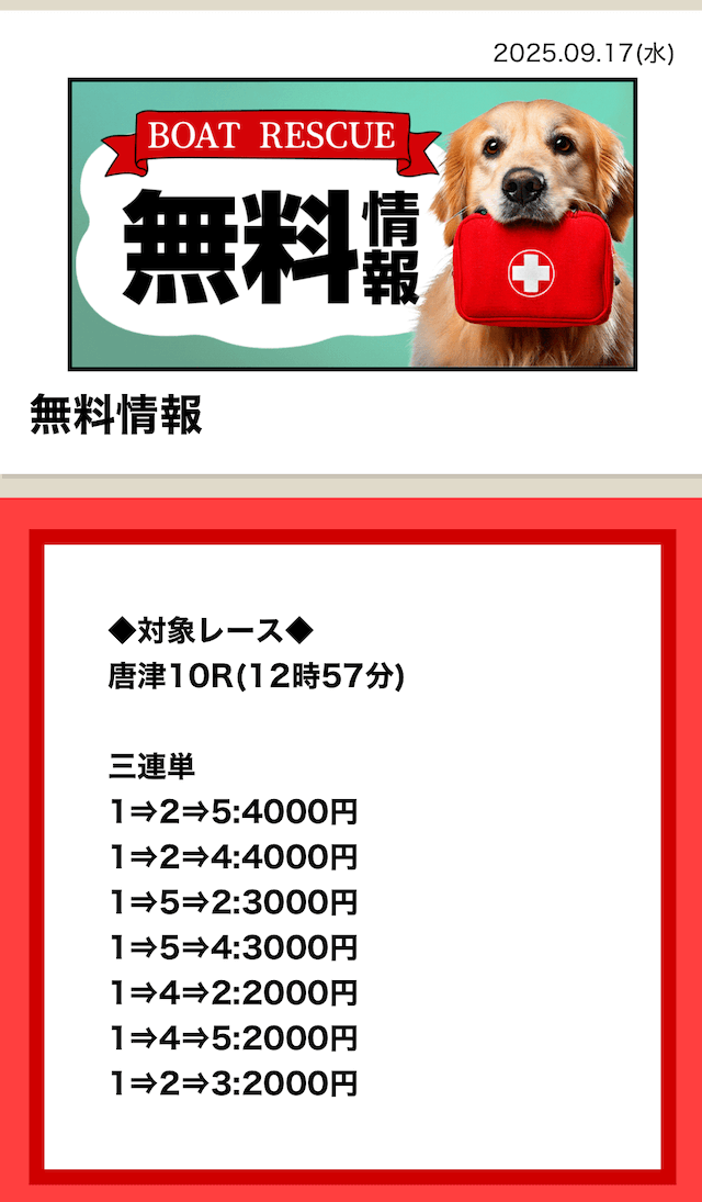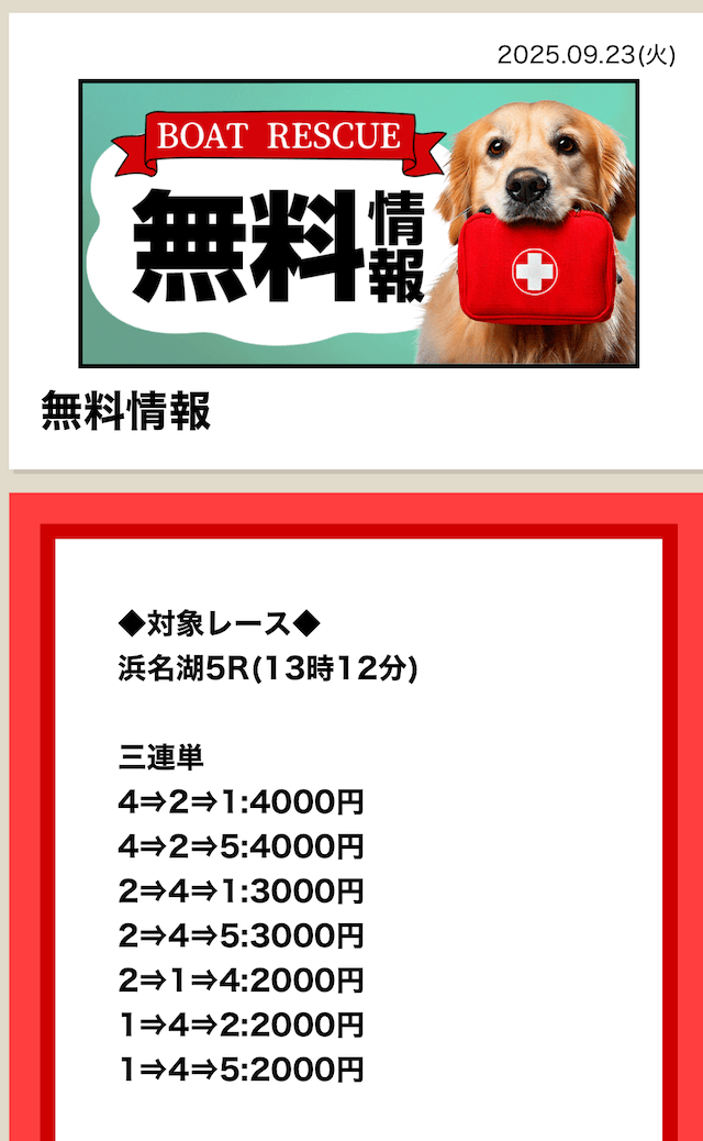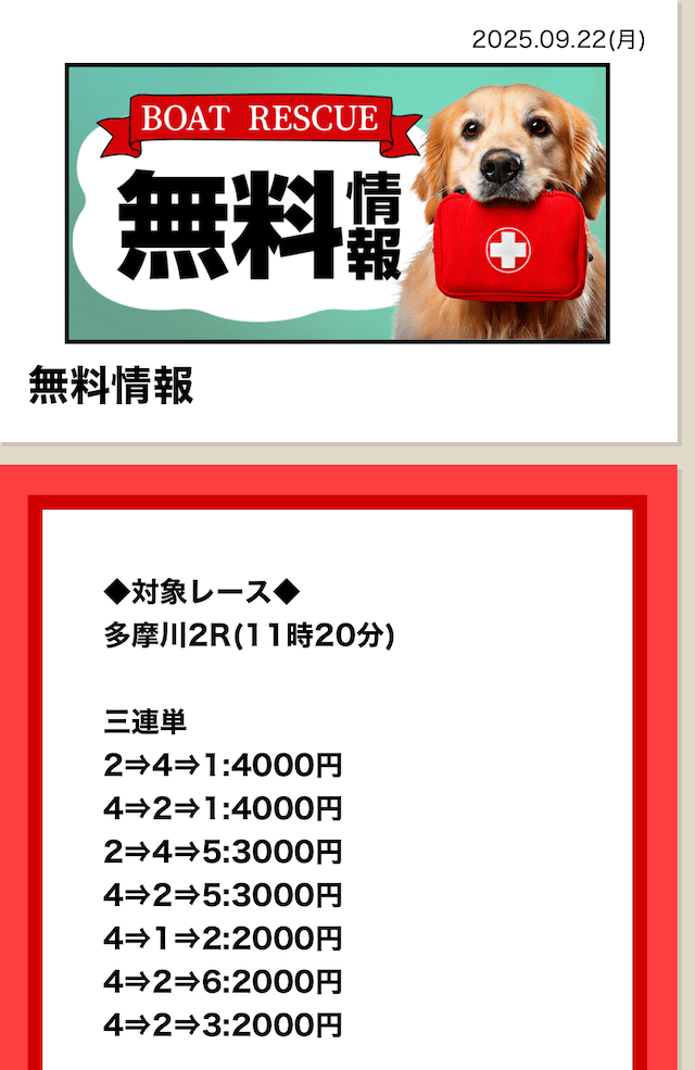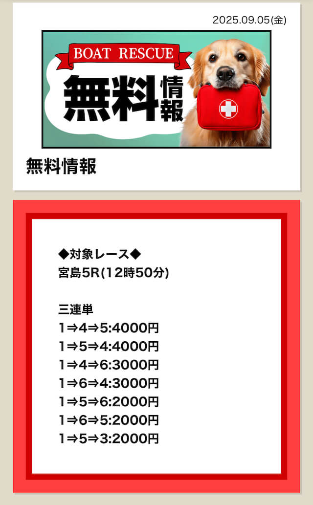2025/7/15 ポイント情報 情報料金+舟券代 10,000円+20,000円 |