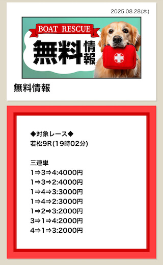 確かに今日も無料情報が若松で当たった 地味だけど的中率高い投稿日:2025/08/28