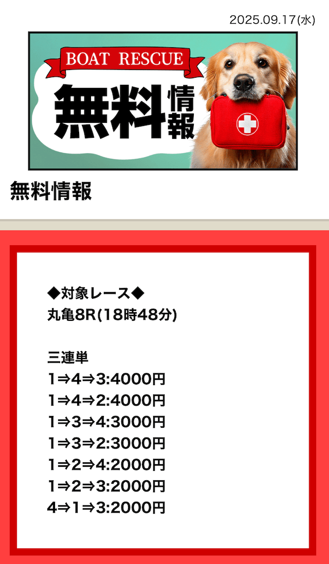 - 確かに当たる 水曜から3日連続で無料情報が的中 木曜の2レースで10万近くとれたと思ったら 今日も無料情報でも5万5600円の払戻しでたし投稿日:2025/09/26
