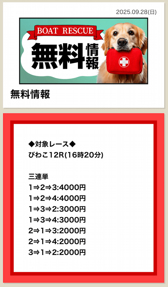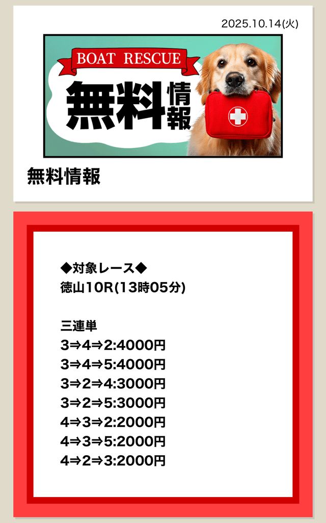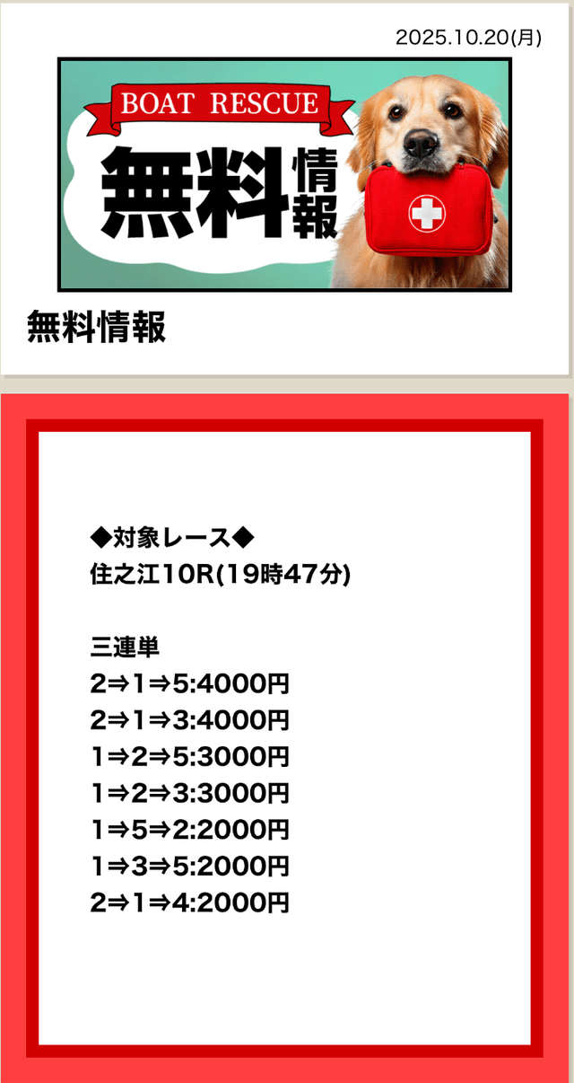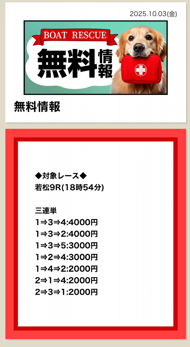 - 9月最後の無料も11万当たったけど 今日10月2日の無料情報も昼に8万9千円、夜の16万円の払い戻し ガチヤバなんだけど投稿日:2025/10/02