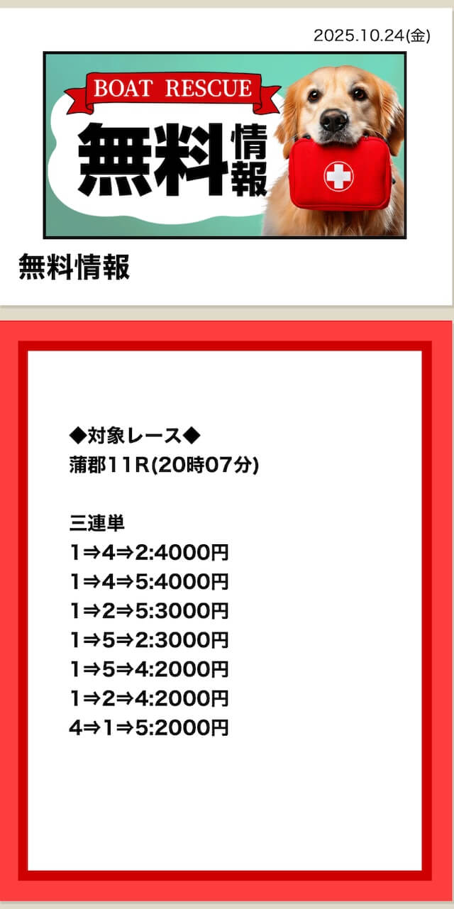| 2025/7/15 ポイント情報 情報料金+舟券代 10,000円+20,000円 |
