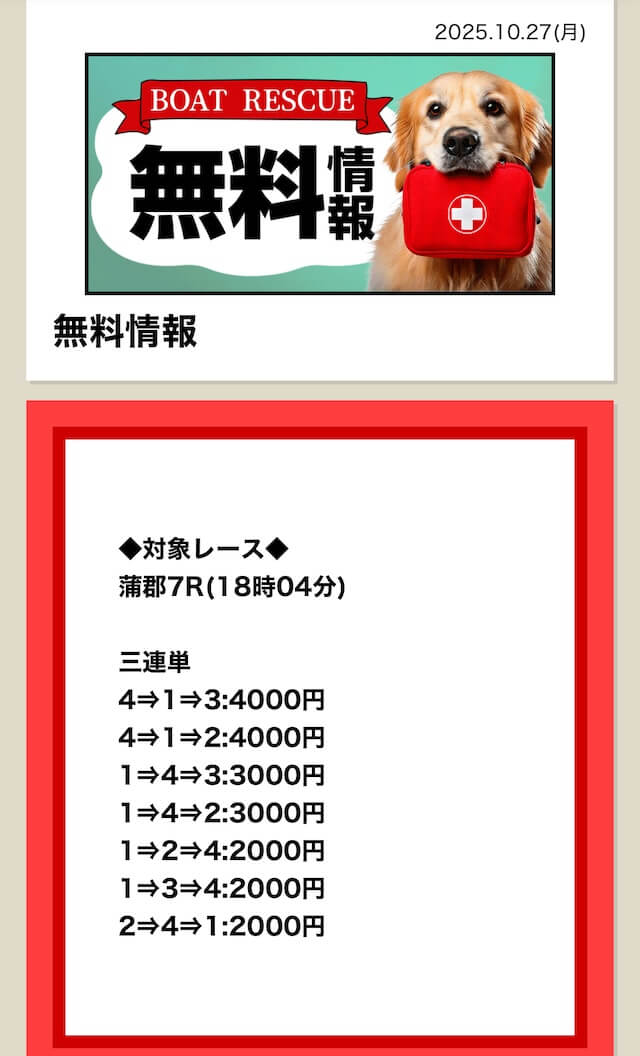 - 毎日全プランの結果が報告されるからプラン選びの参考なって◎!あと何より、他は優良サイトでも的中した結果しか言わないサイトが多いから、その点「ボートレスキュー」の信憑性は◎だわ!投稿日:2025/07/09