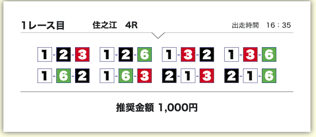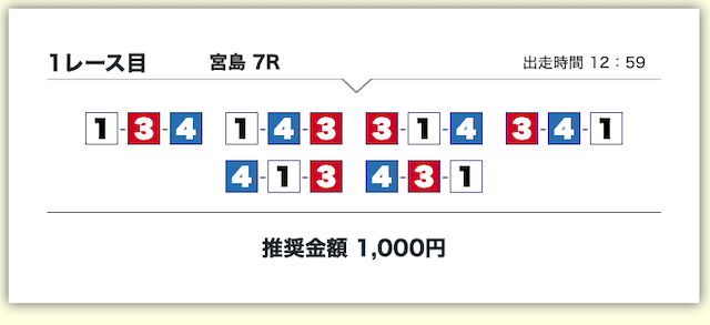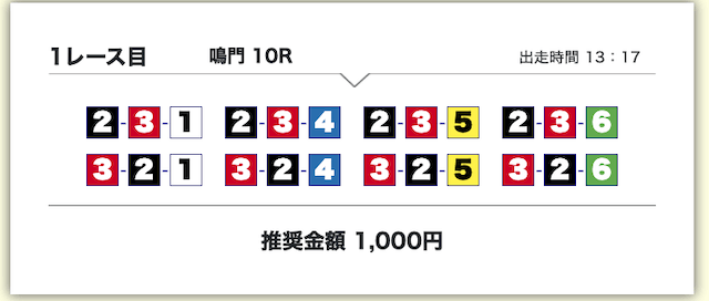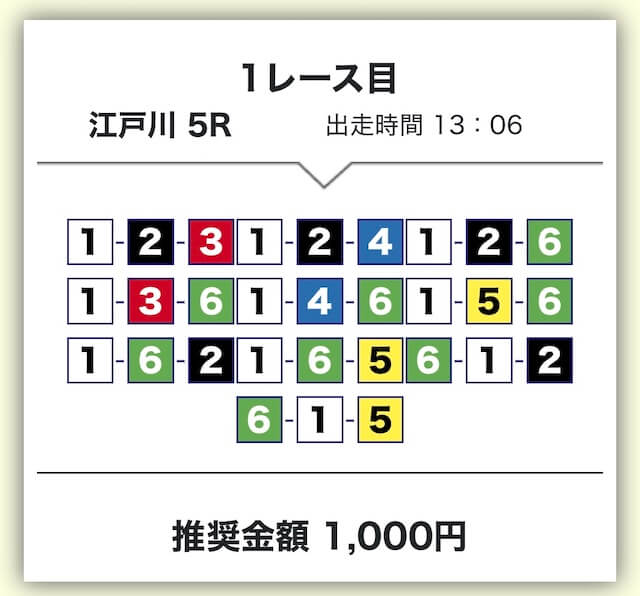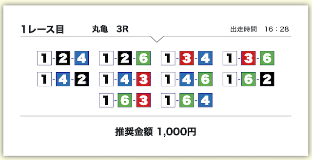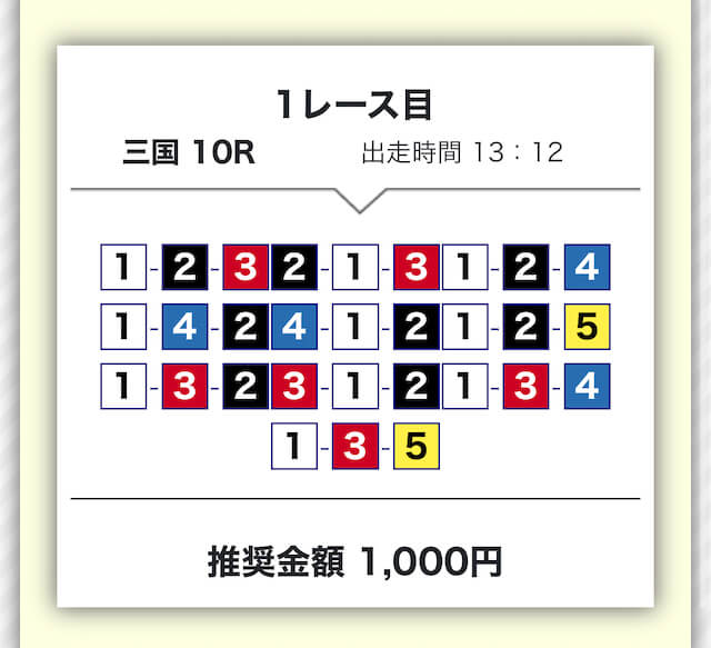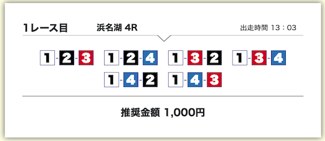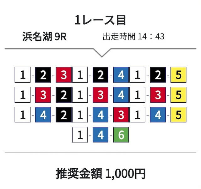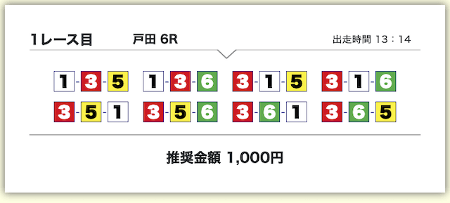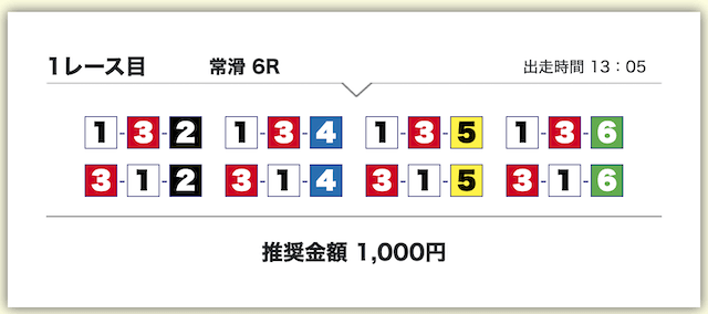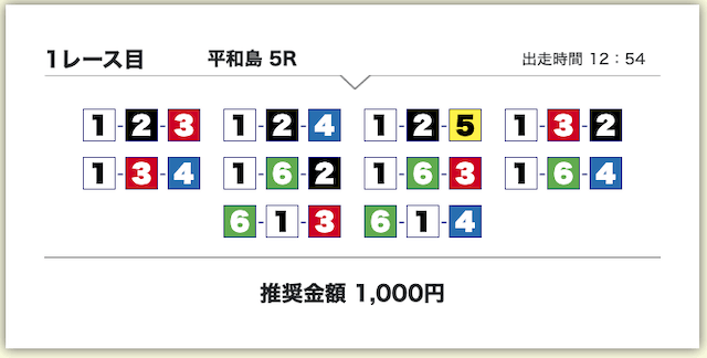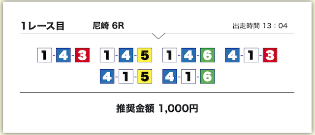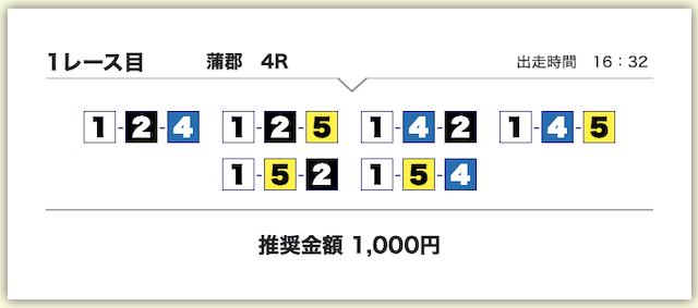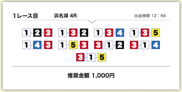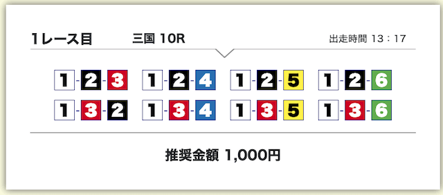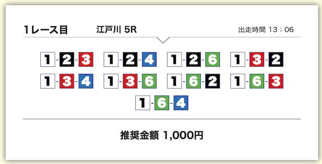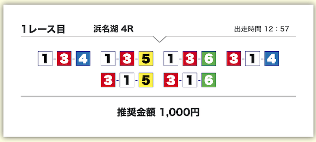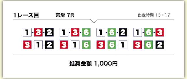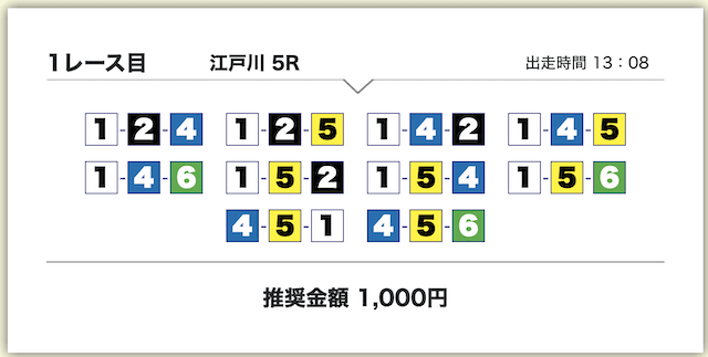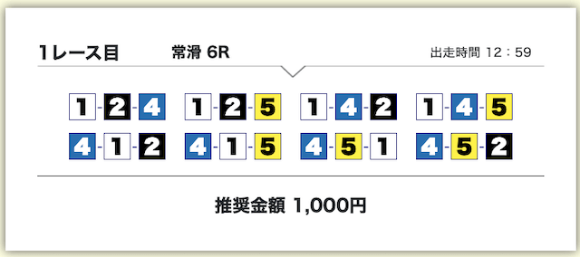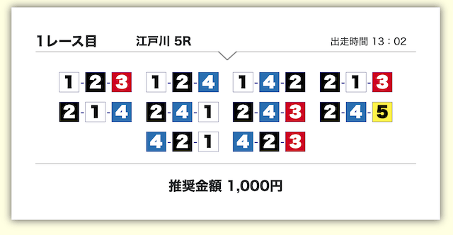 買い目は、①号艇をアタマに固定した組み合わせです。