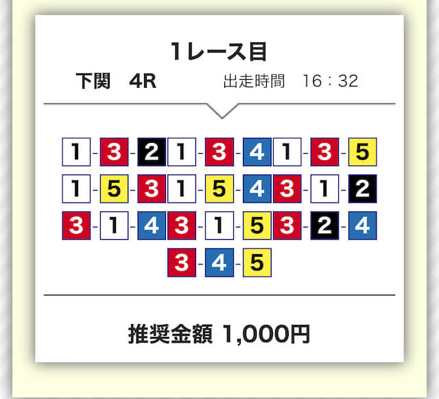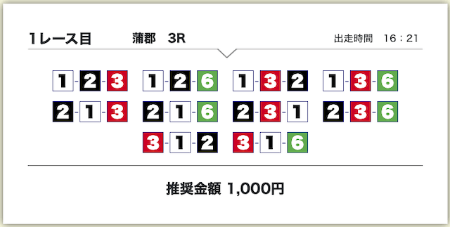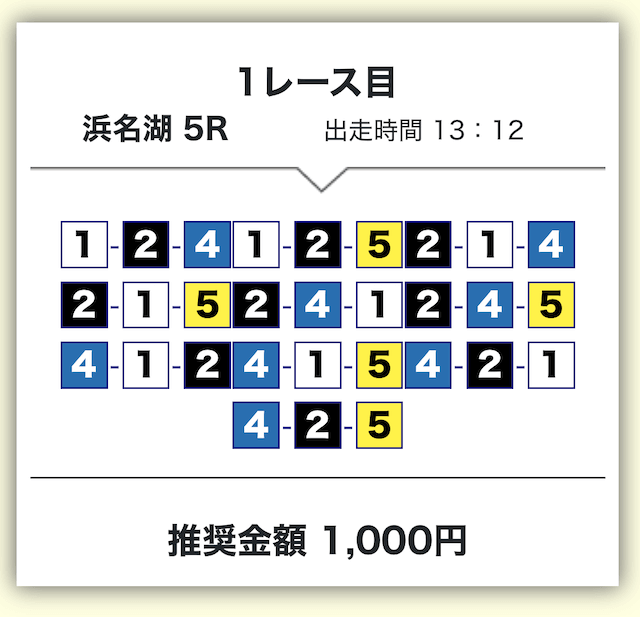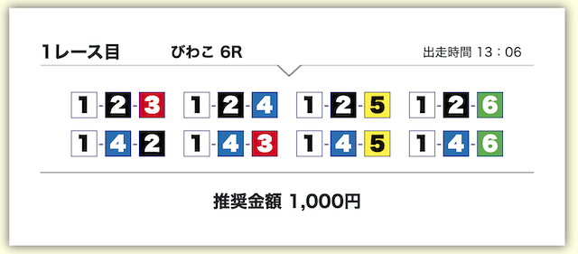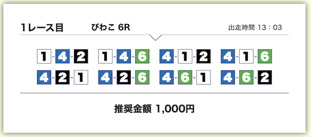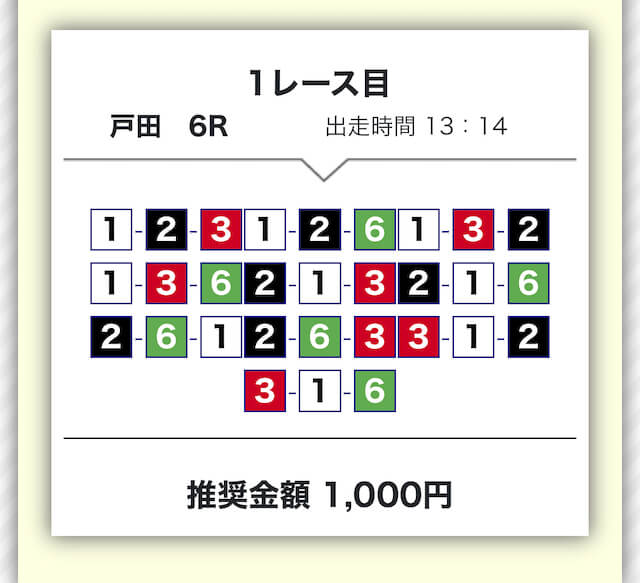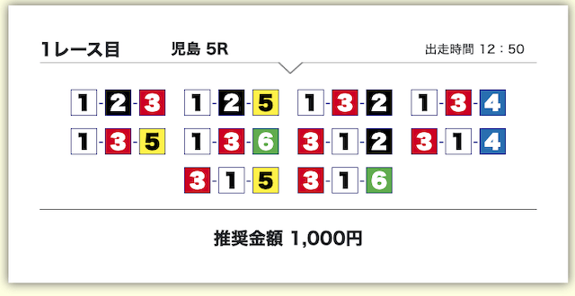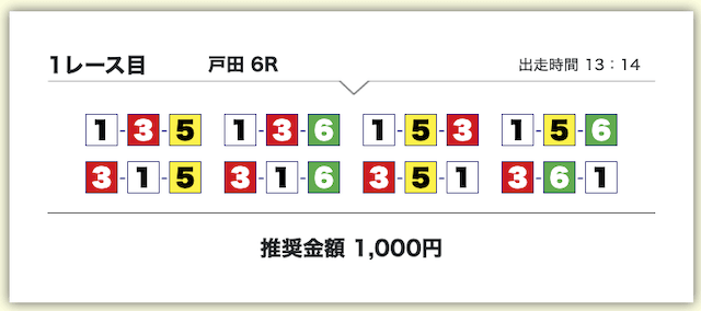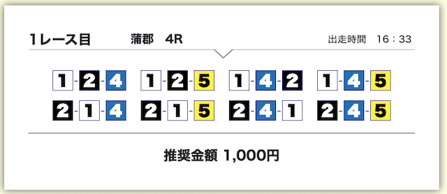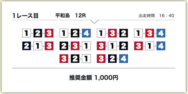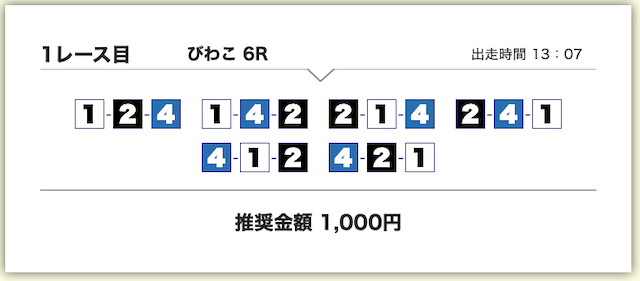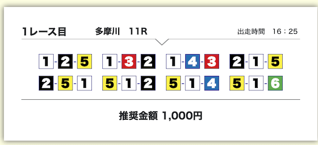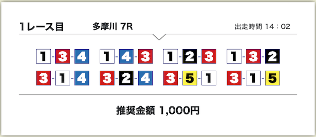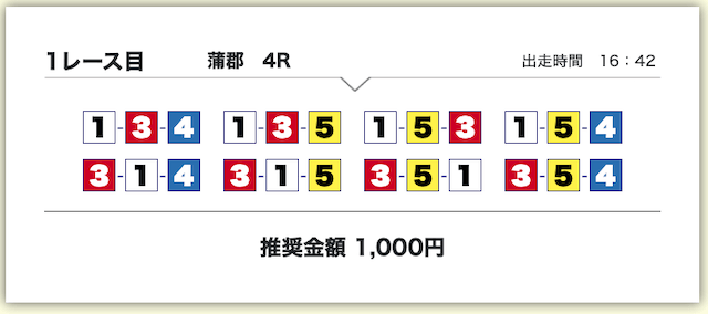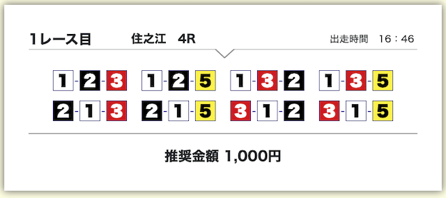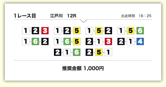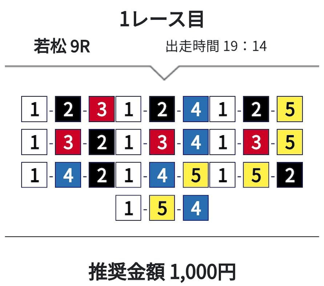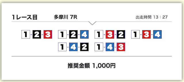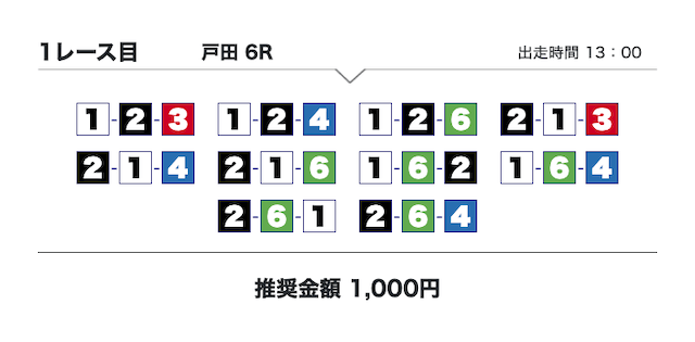 買い目は、①号艇をアタマに固定した組み合わせです。