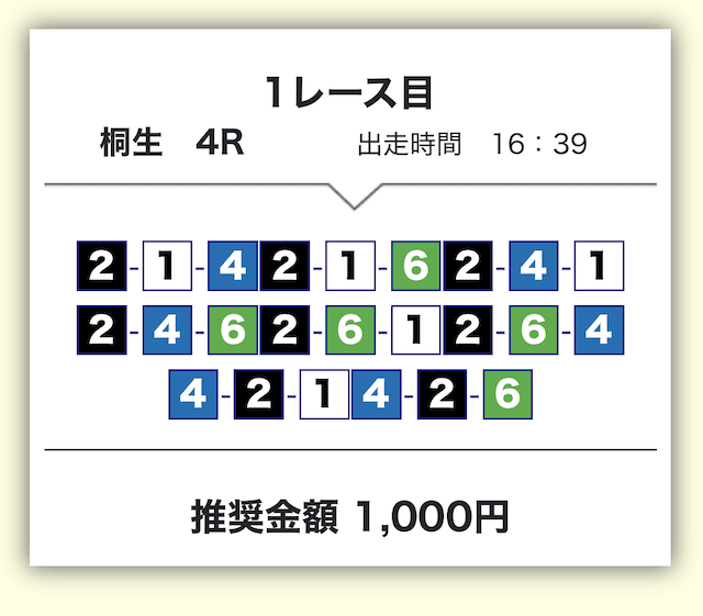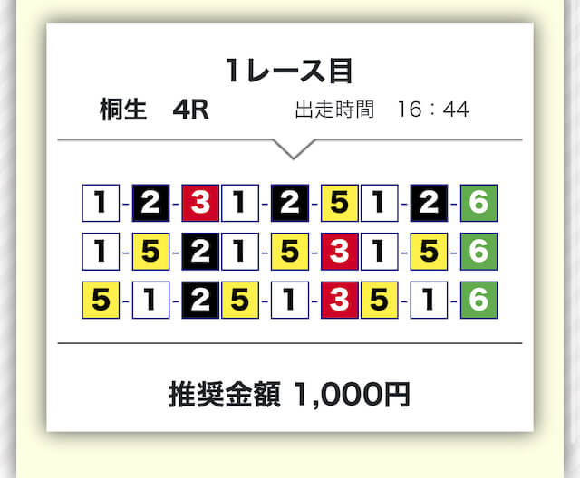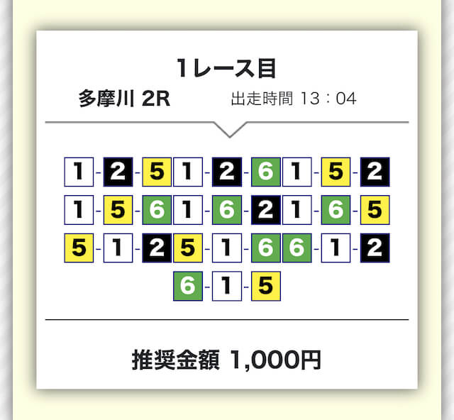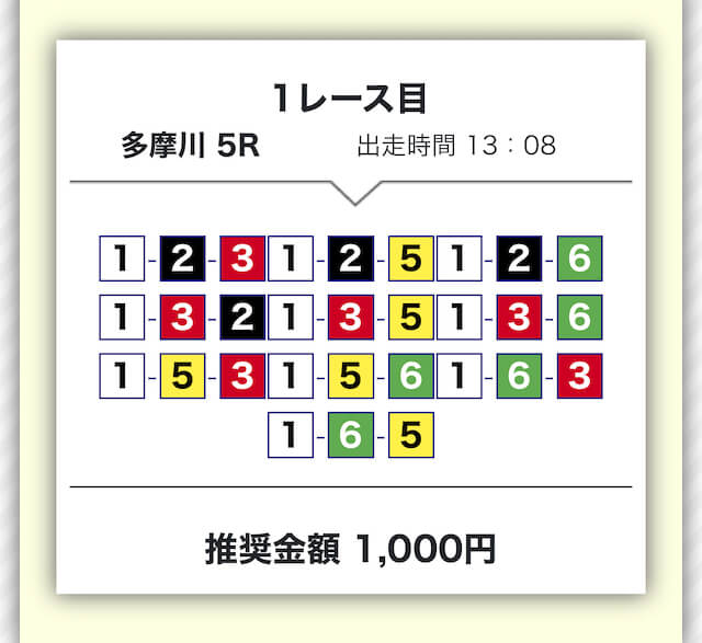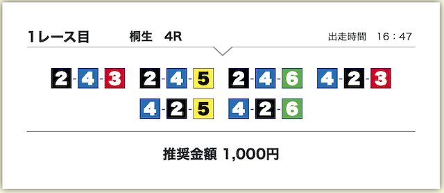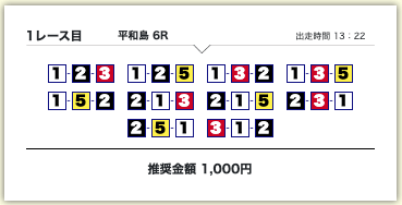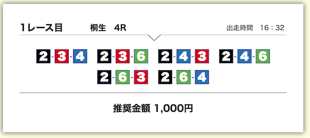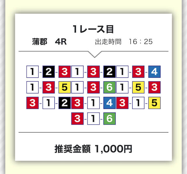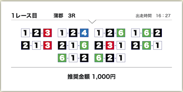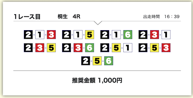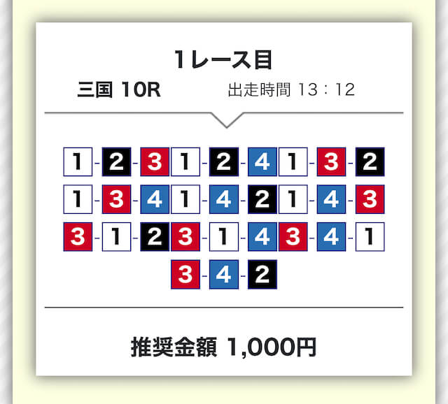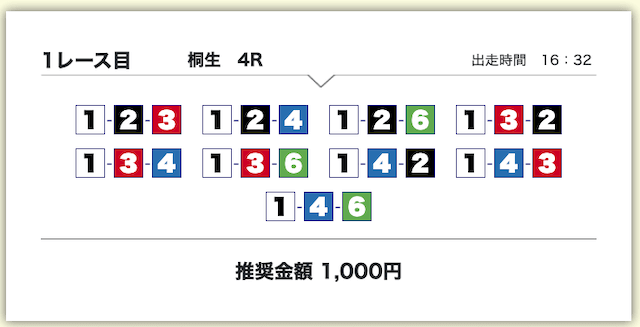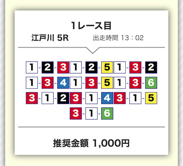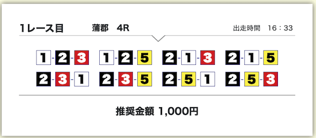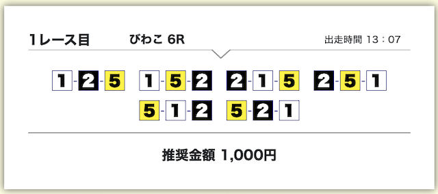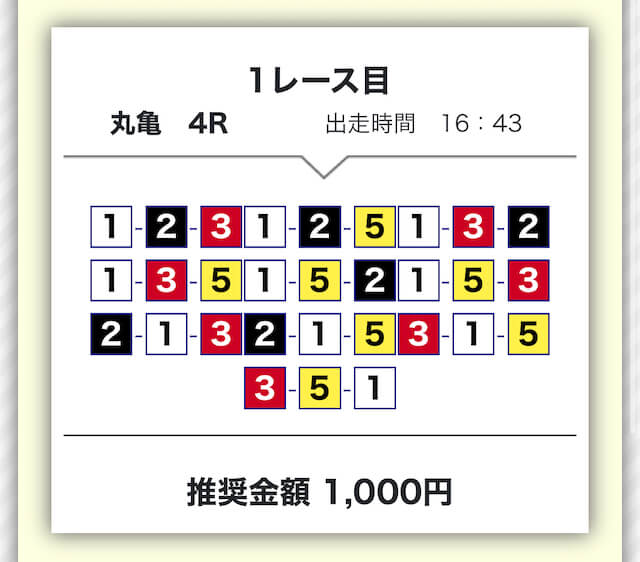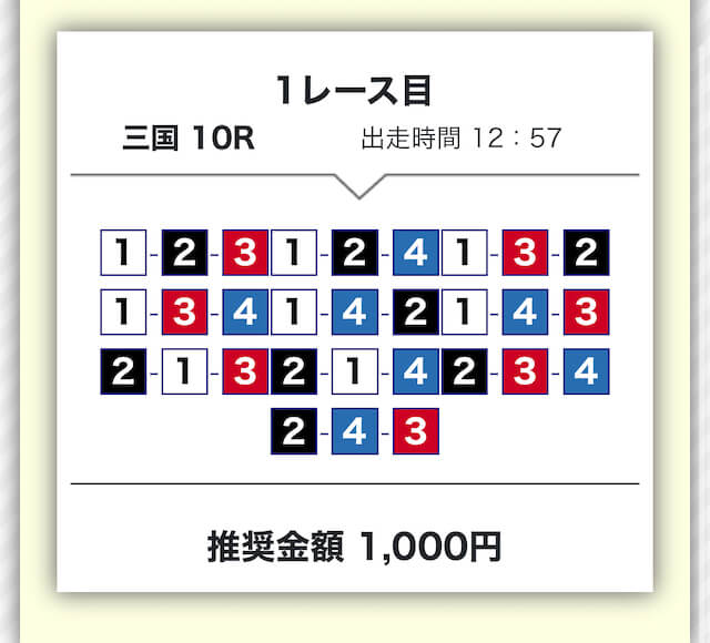 買い目は、①号艇をアタマに固定した組み合わせです。
