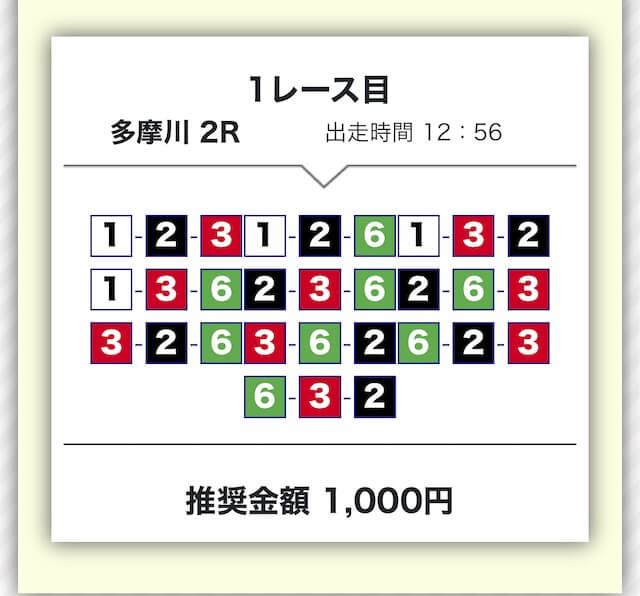 - プラン名神の時間参加必要PT非公開対象2レース(コロガシ)券種3連単5点〜8点舟券代10,000円〜24,000円目標金額非公開