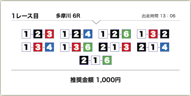 しっかり「③-②-⑥」に1,000円を賭けています!