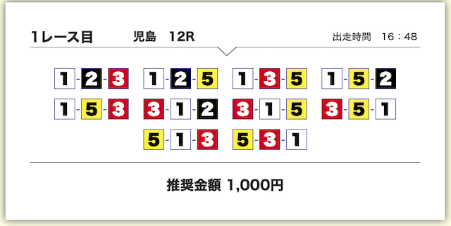 実際に公開されていた買い目を見てみると・・・