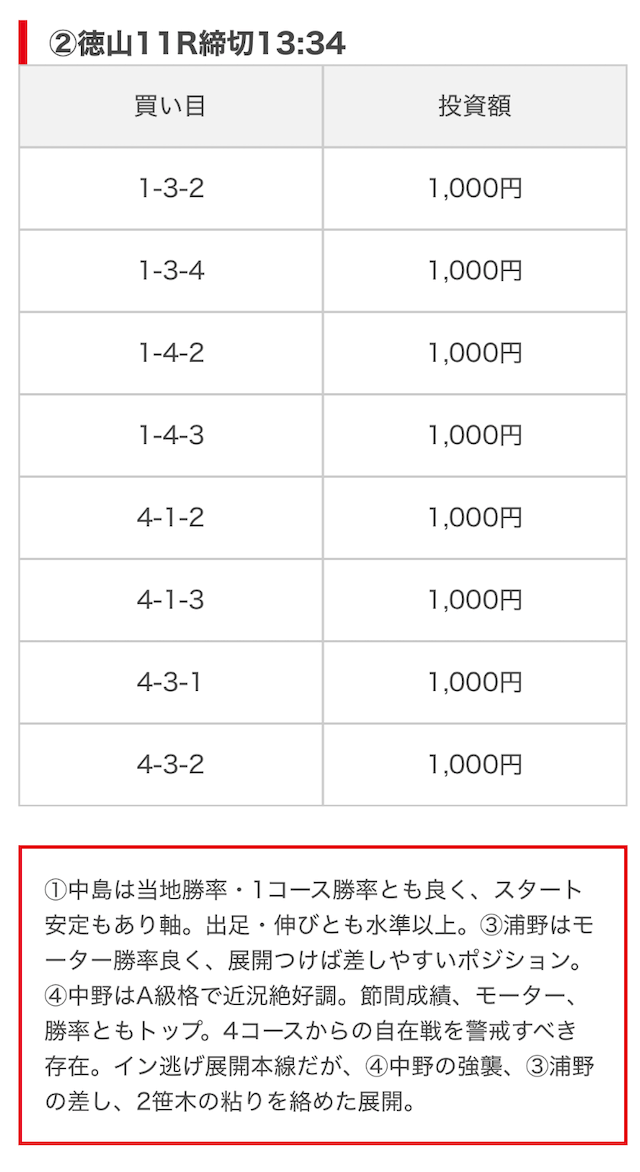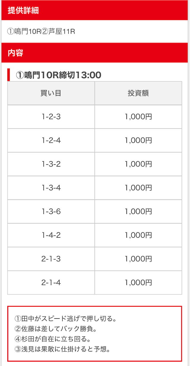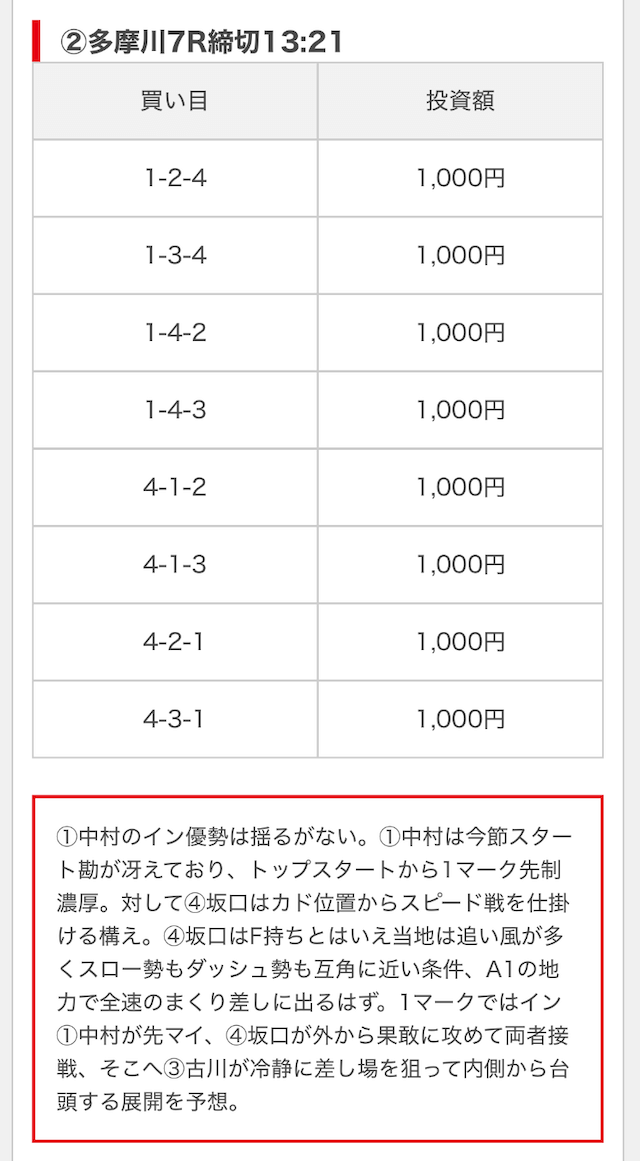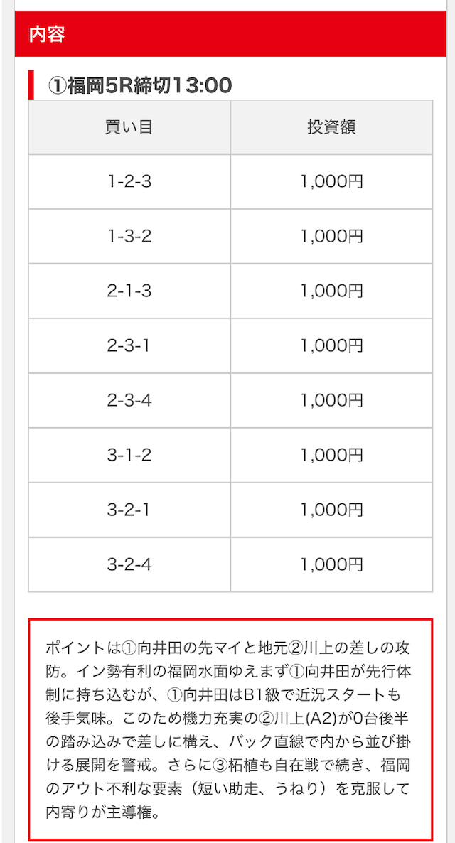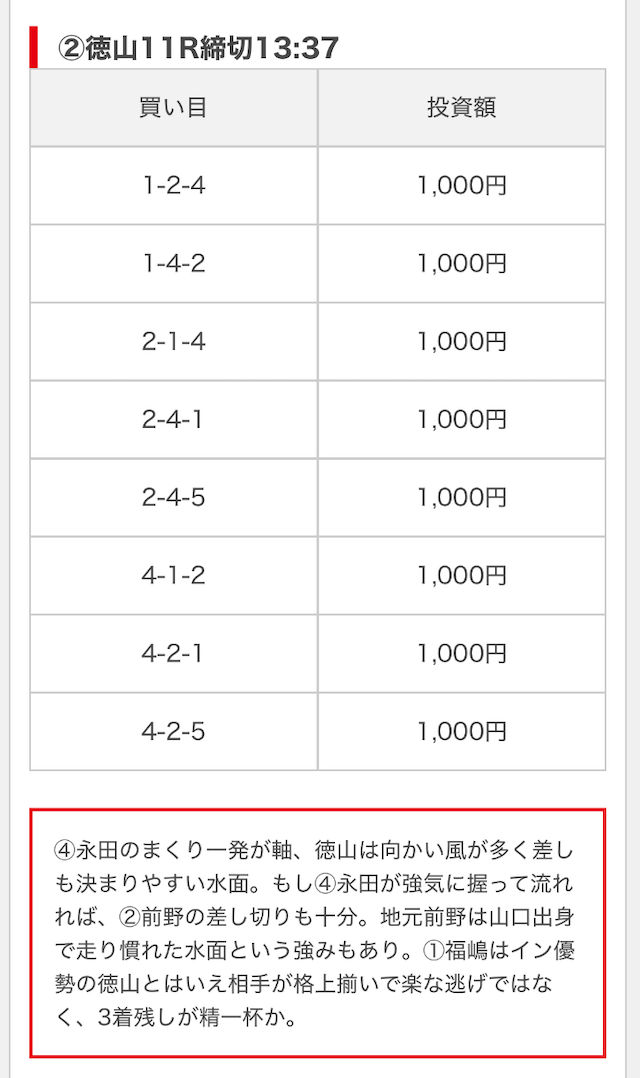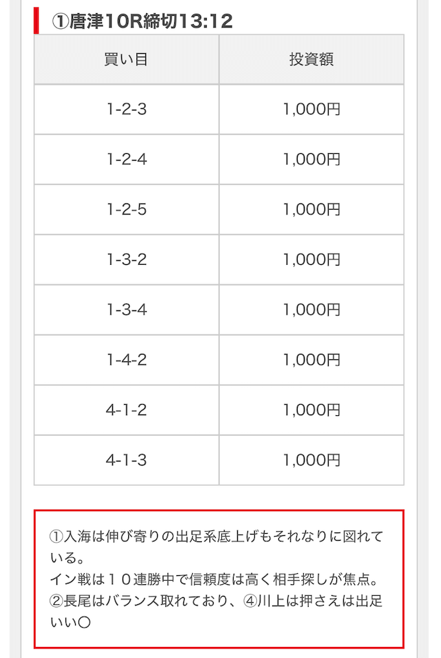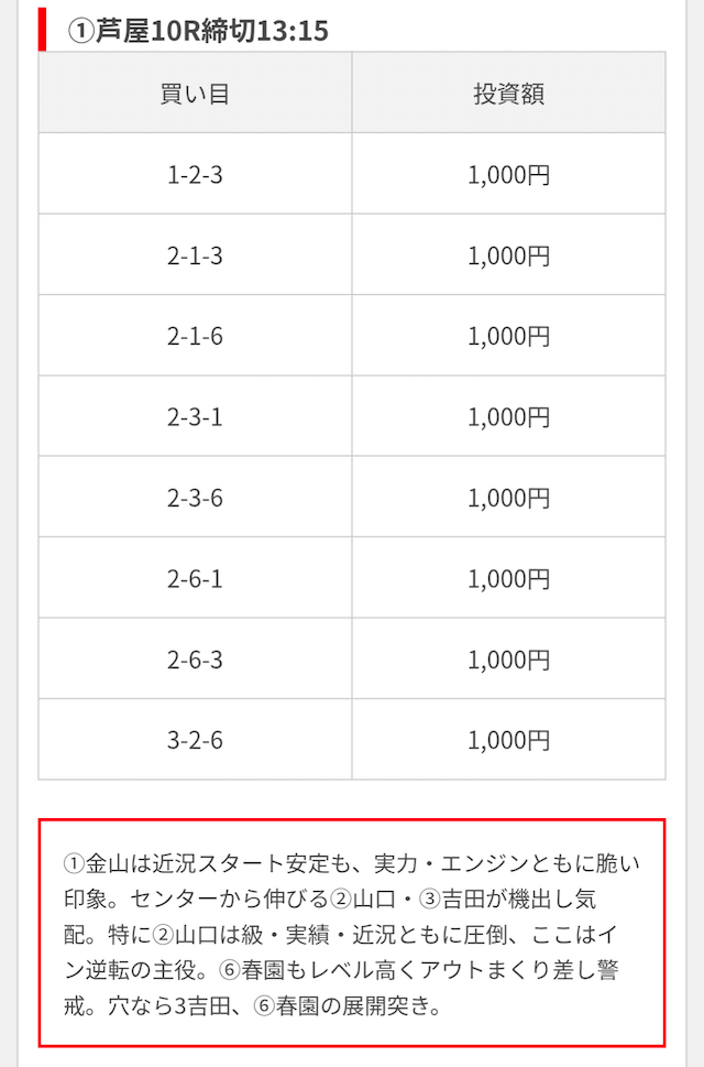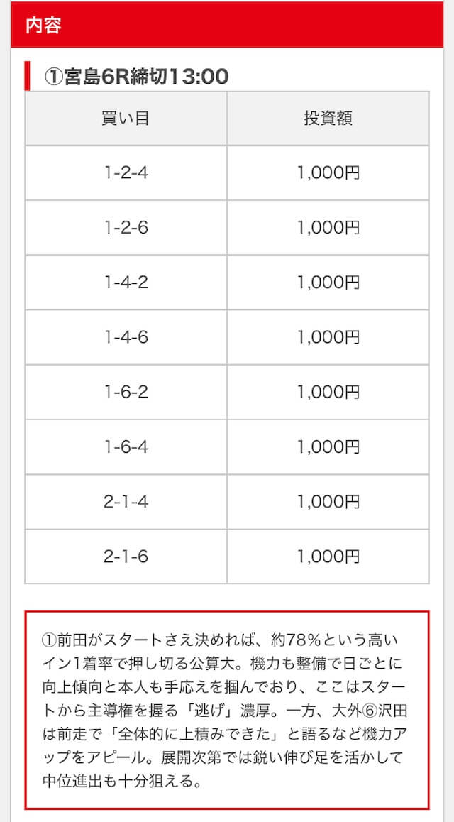 - 買い目に根拠・見解が書かれていて信憑性が高い(無料予想)