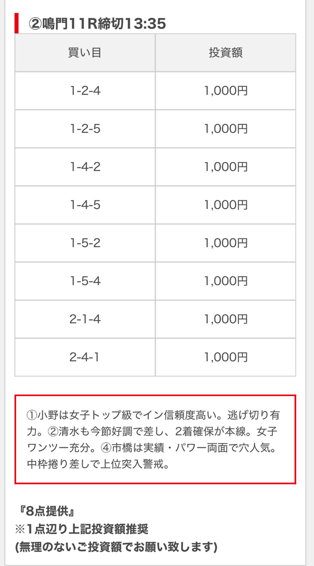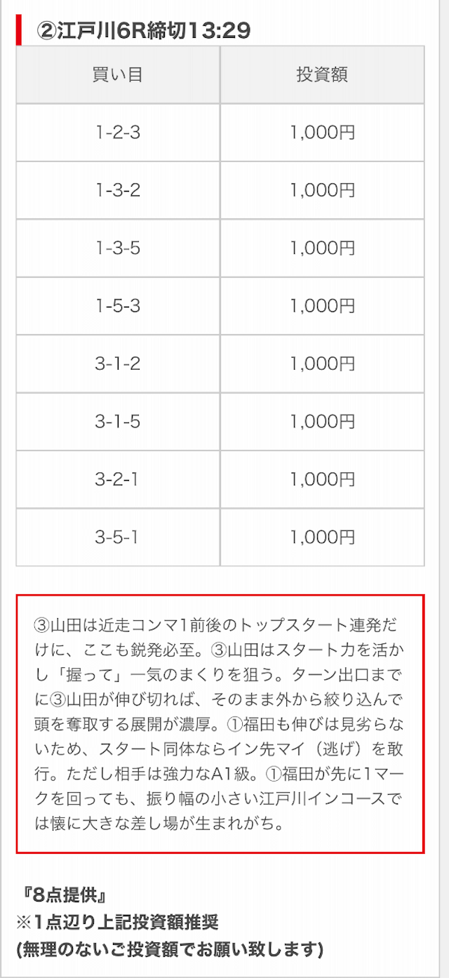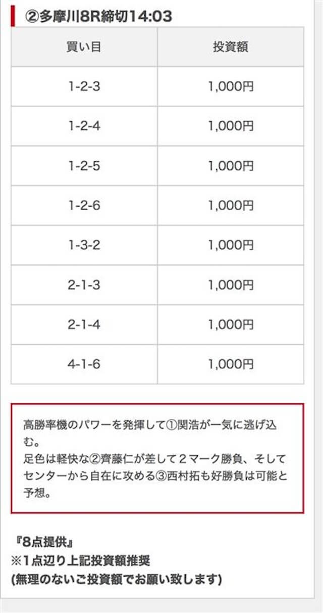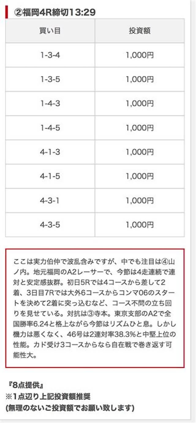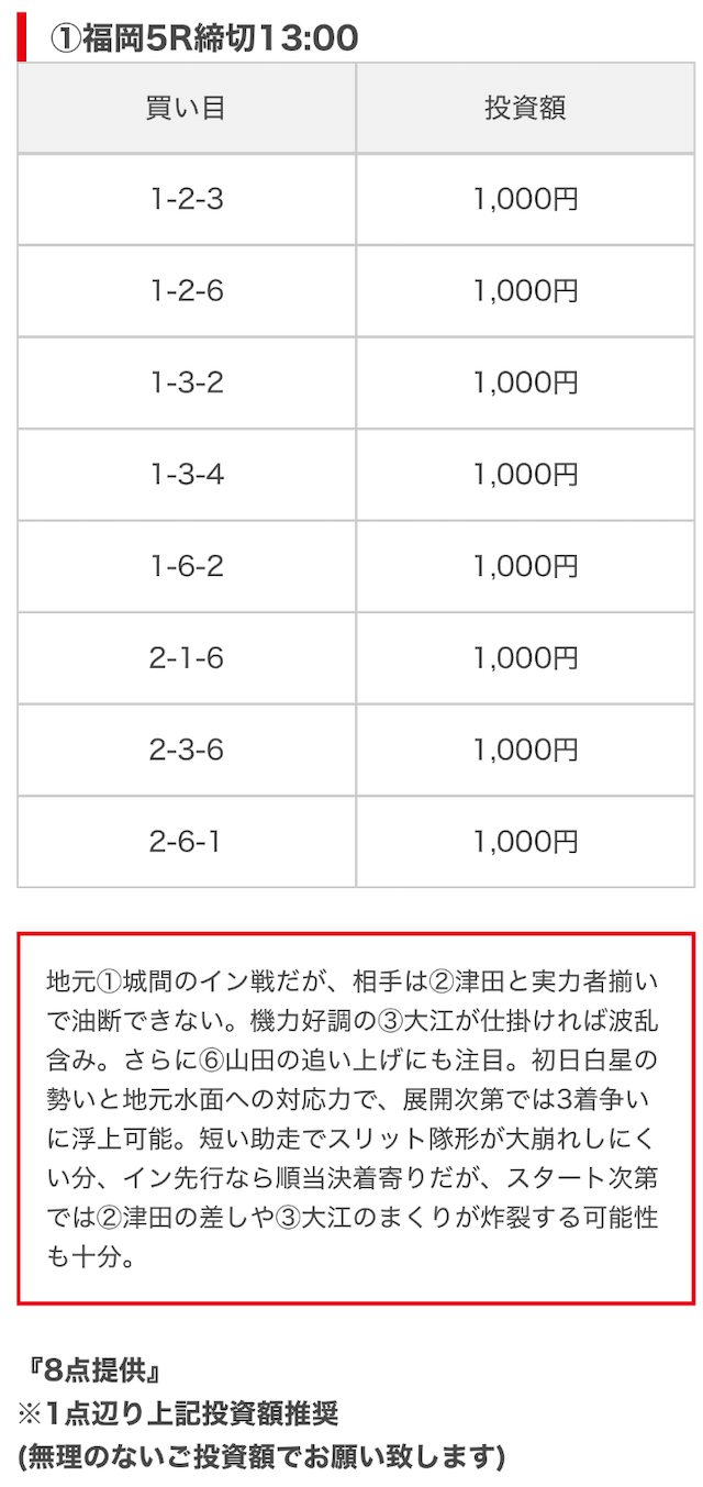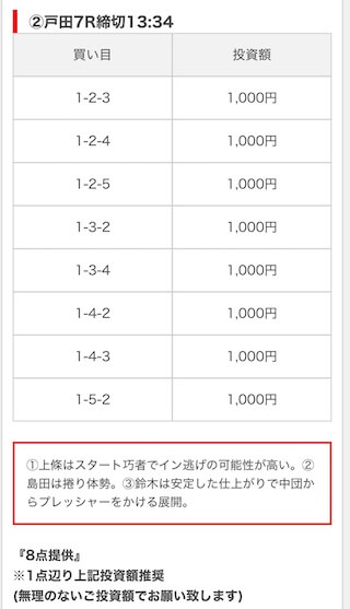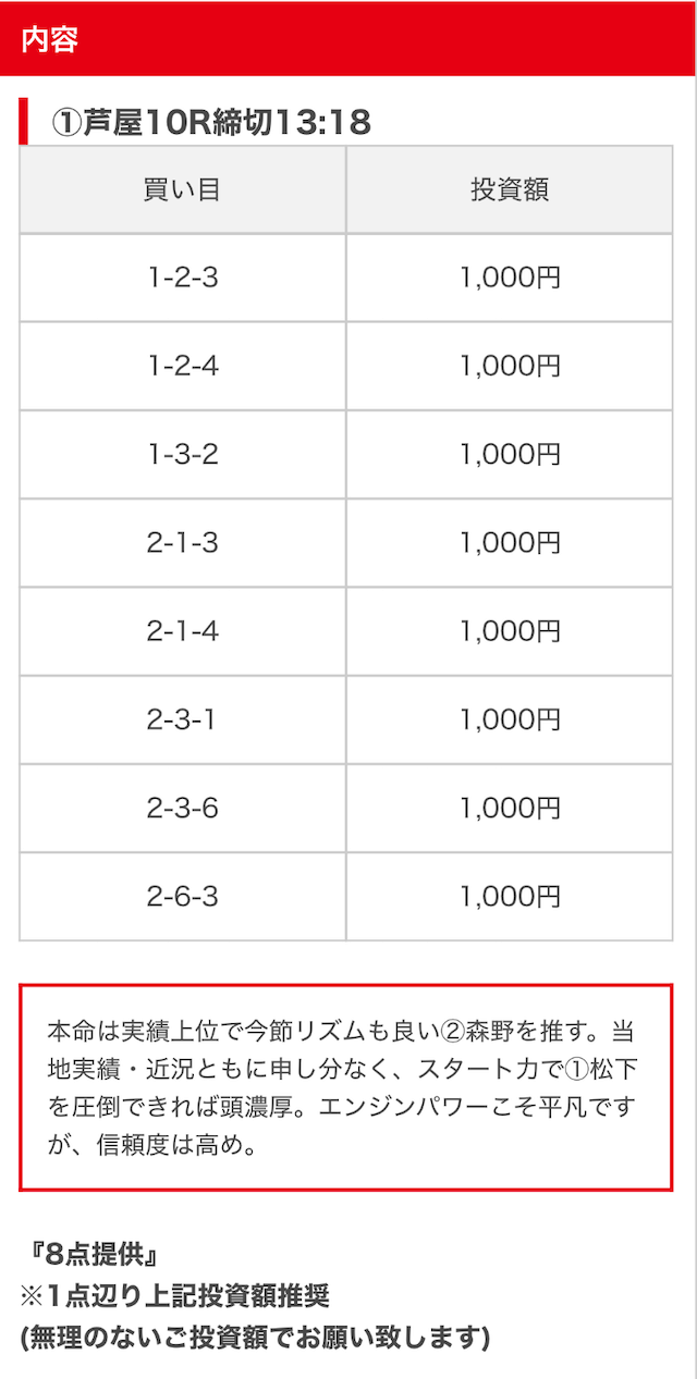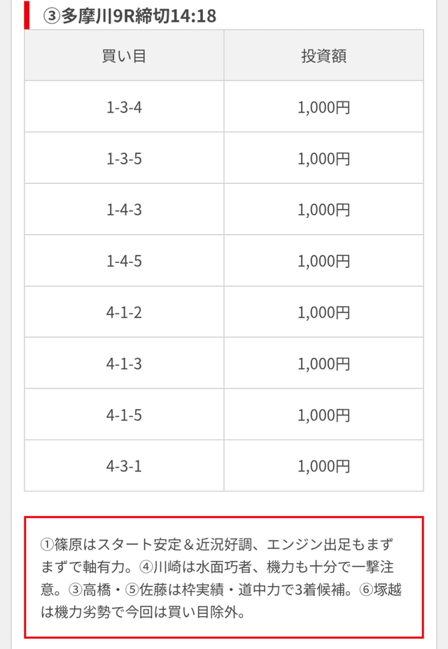 - 買い目に根拠・見解が書かれていて信憑性が高い(無料予想)