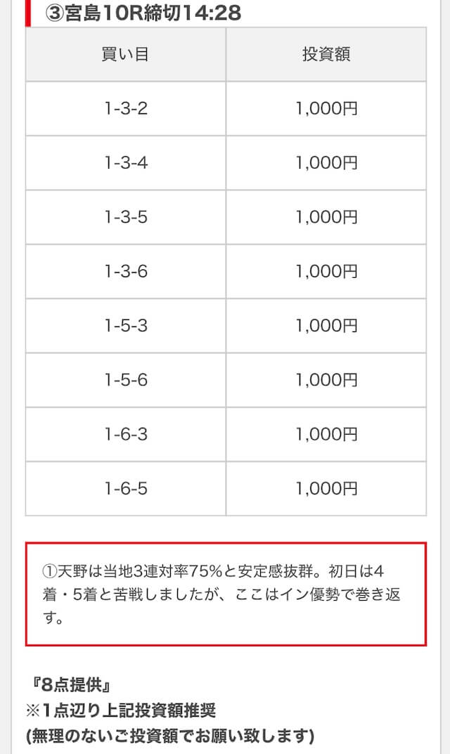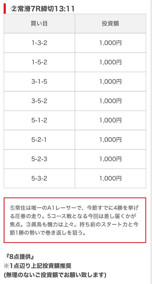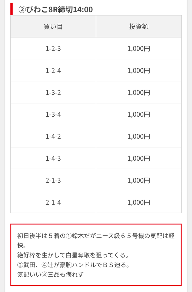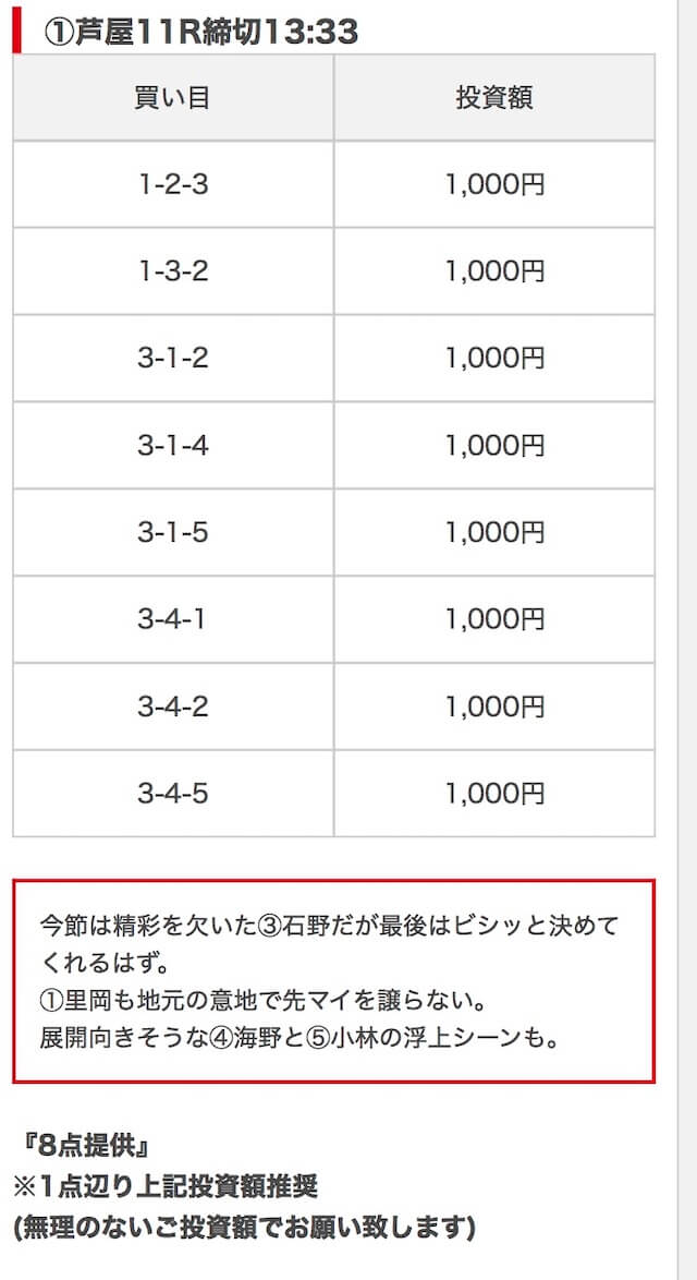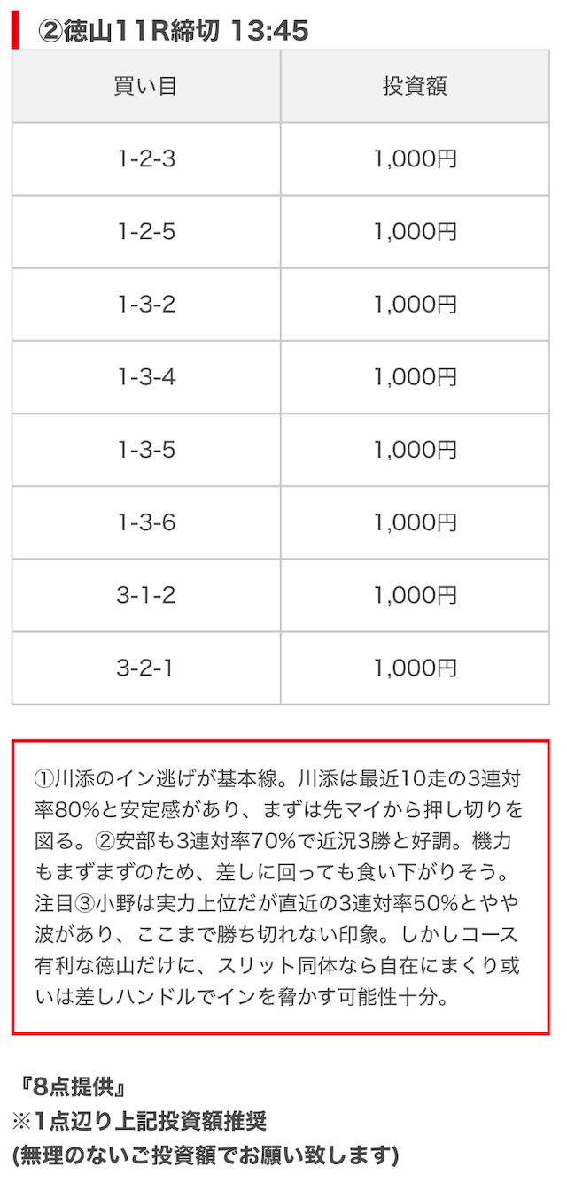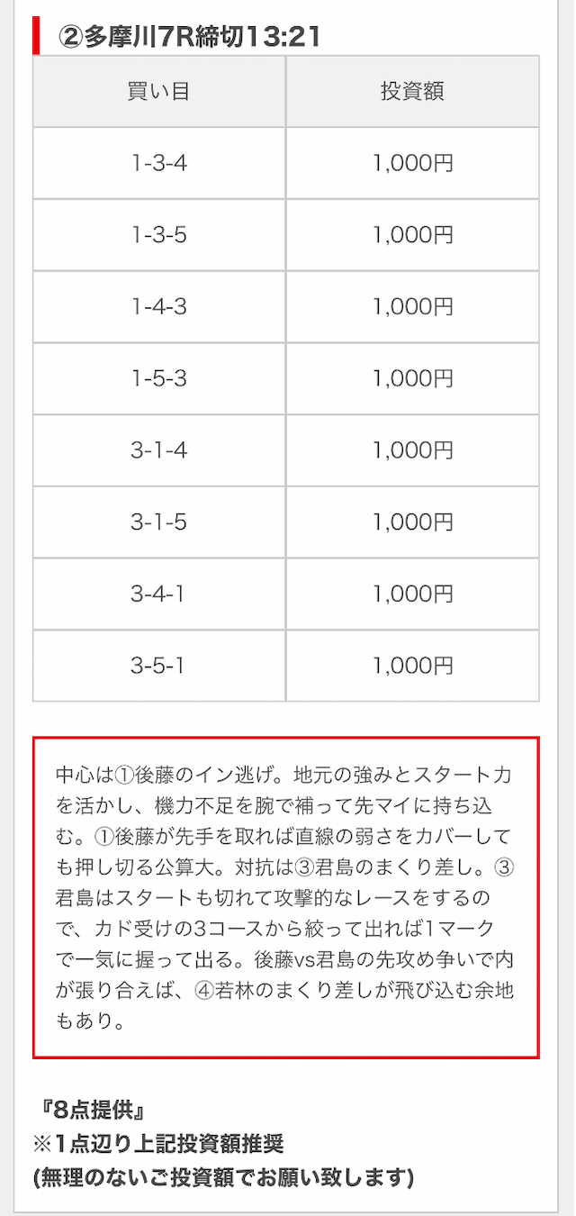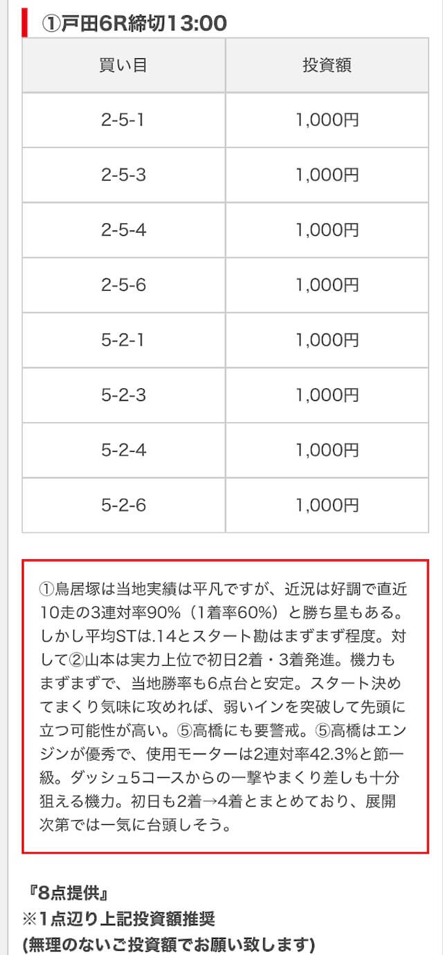 - 買い目に根拠・見解が書かれていて信憑性が高い(無料予想)