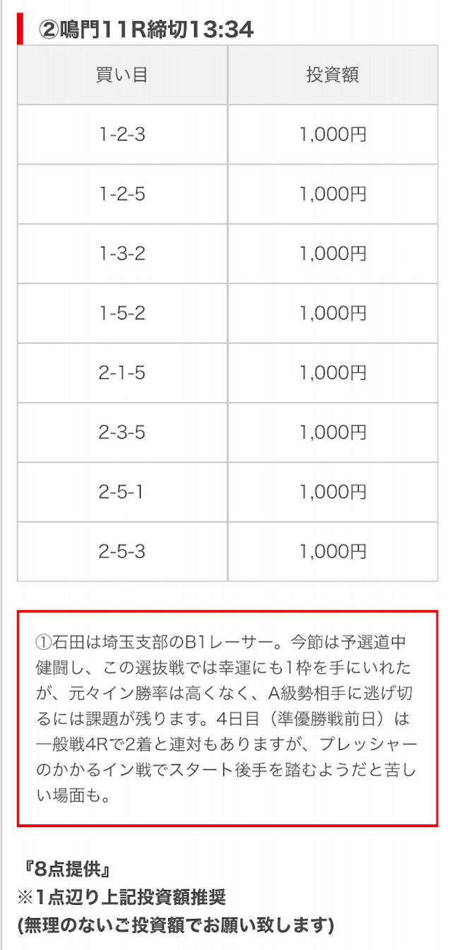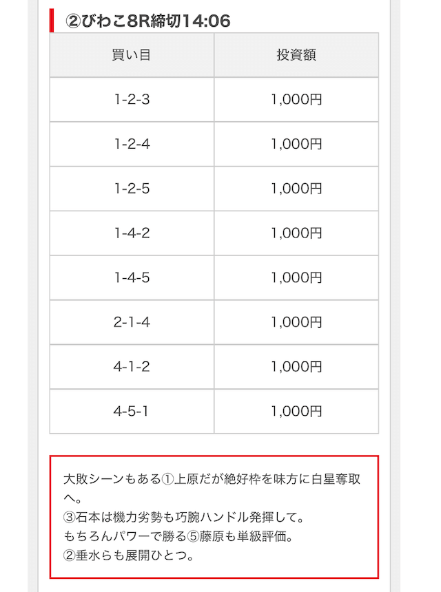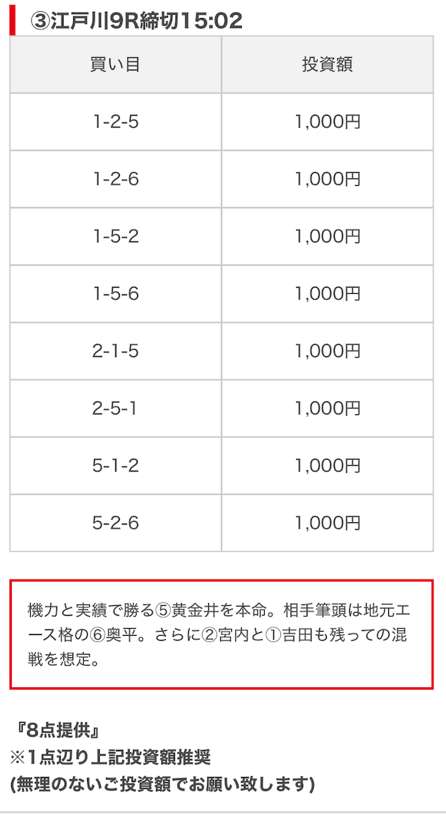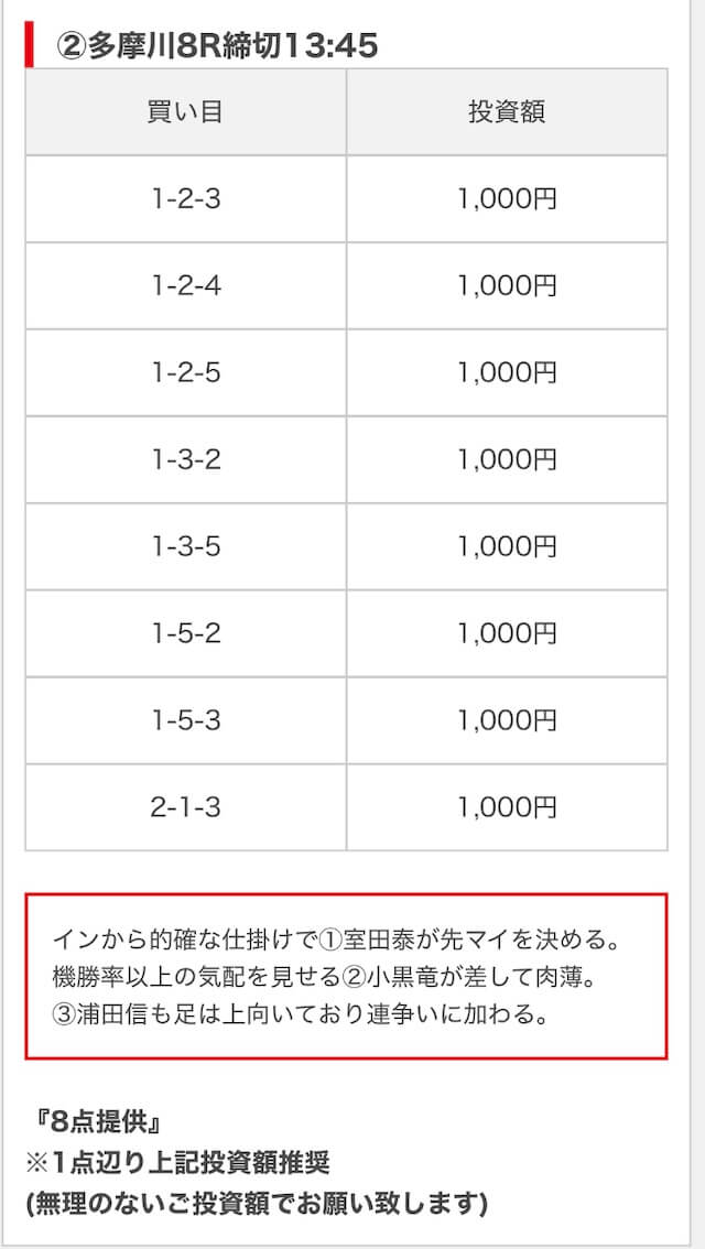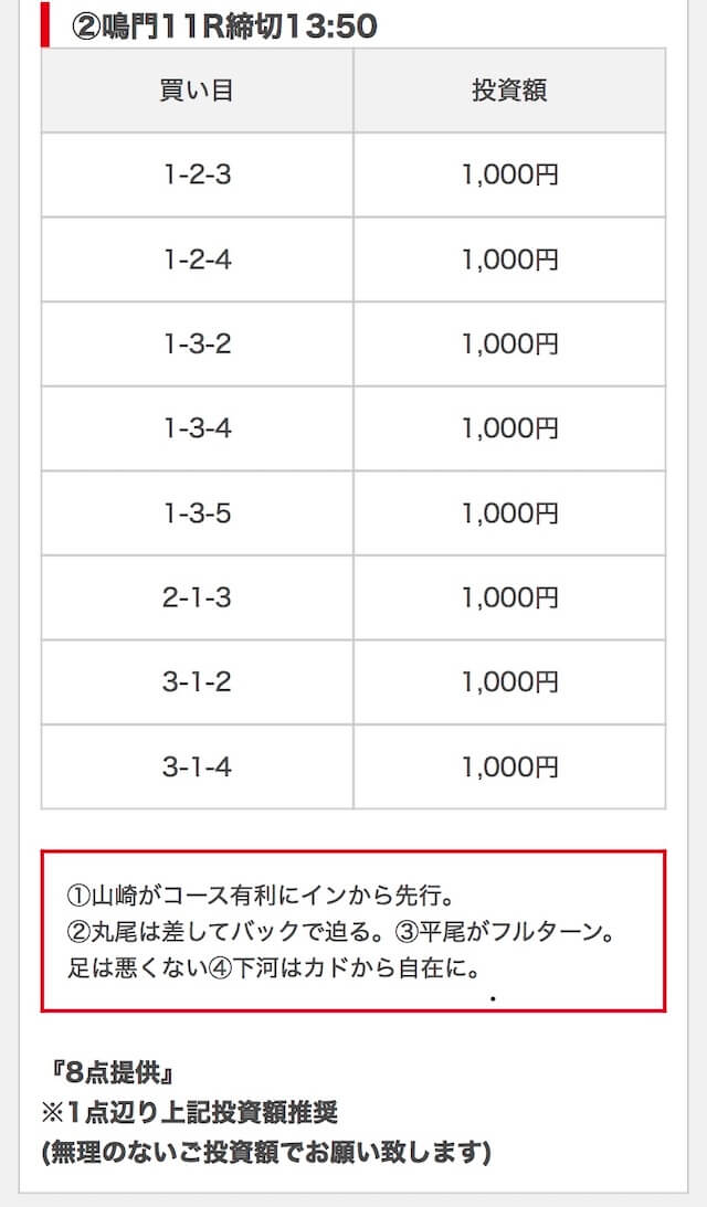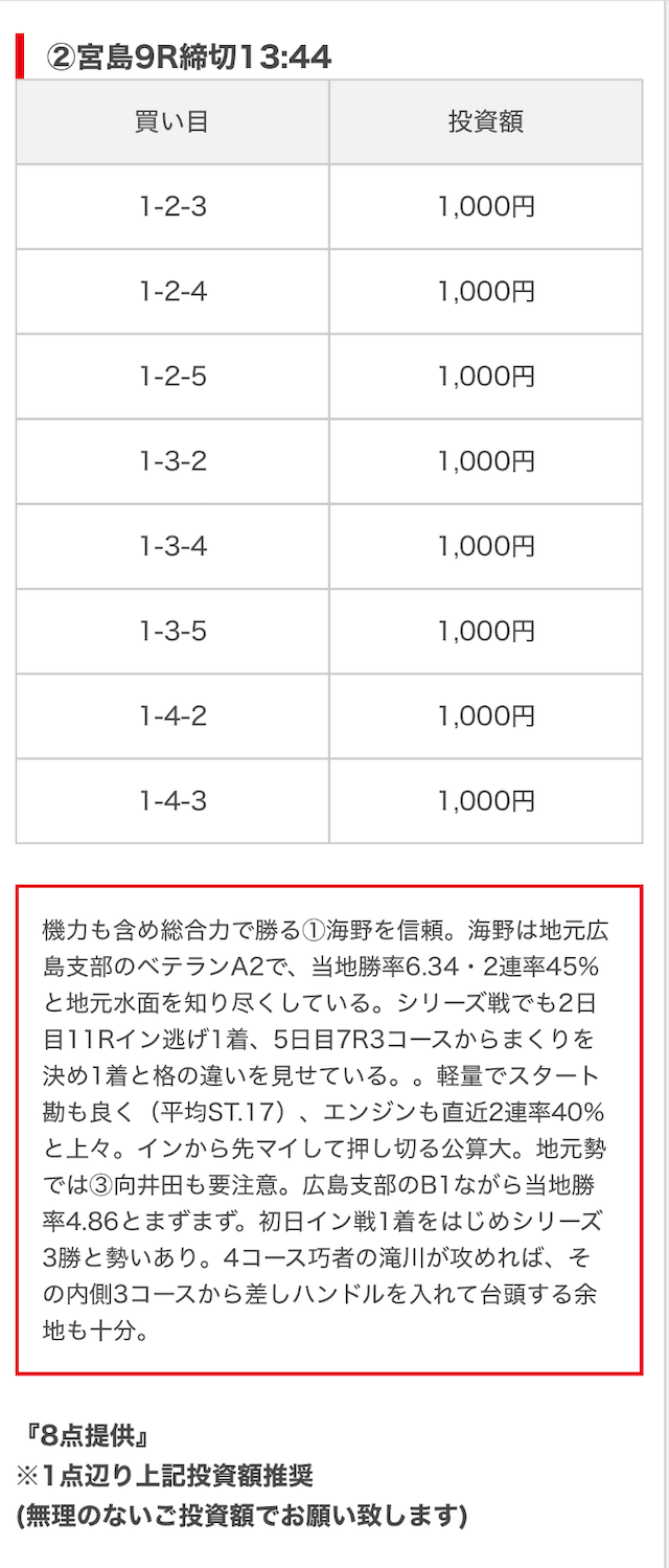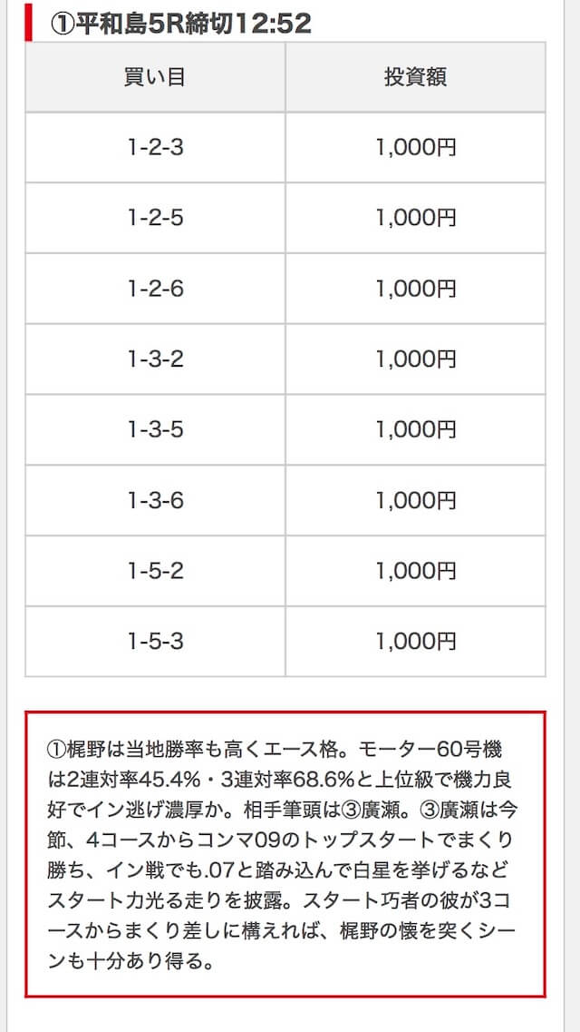 - 買い目に根拠・見解が書かれていて信憑性が高い(無料予想)