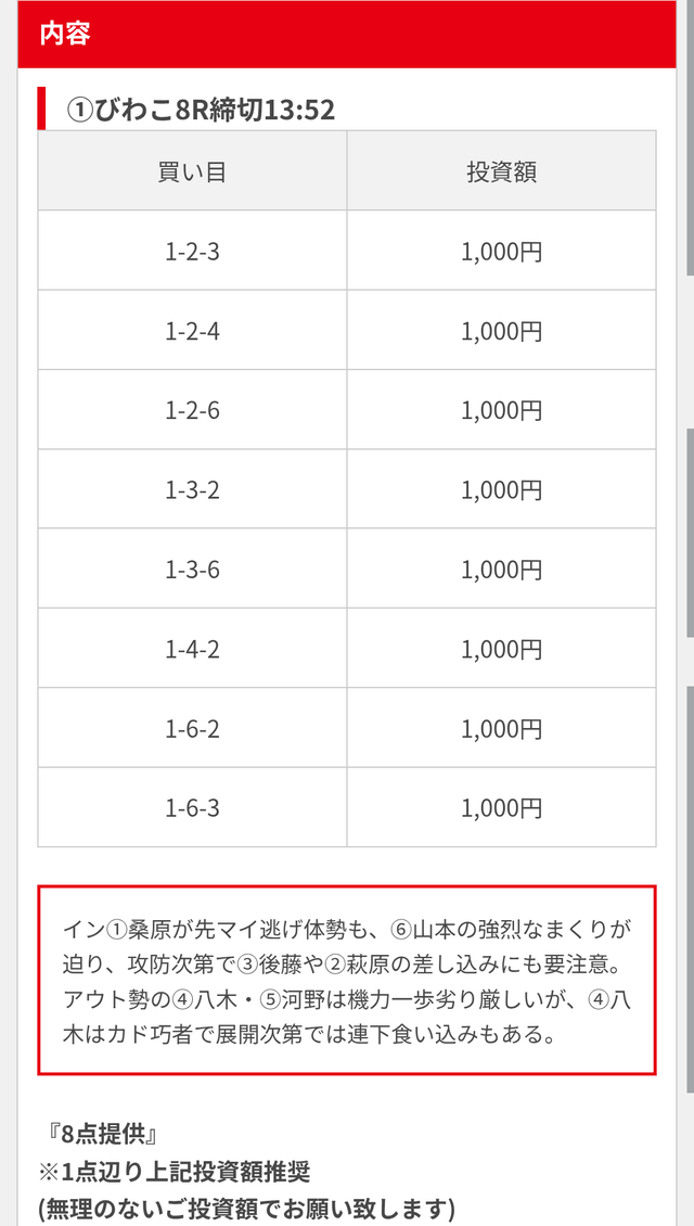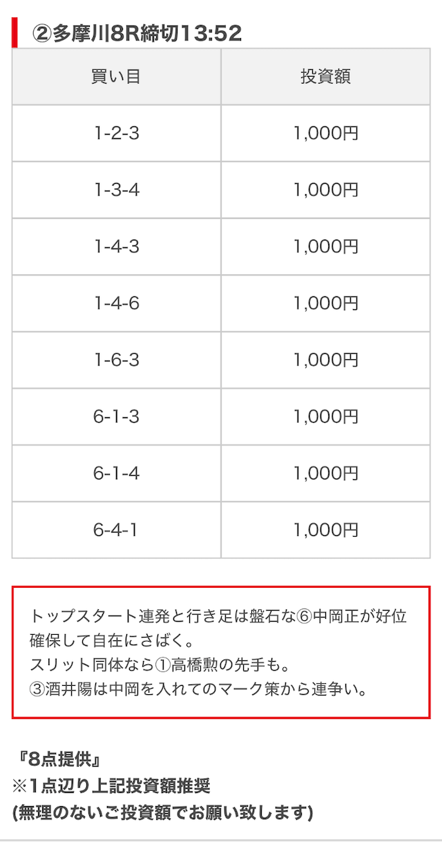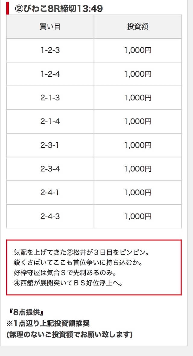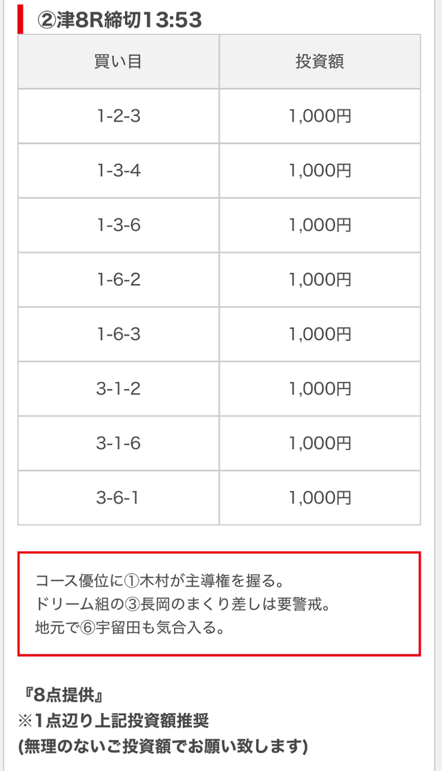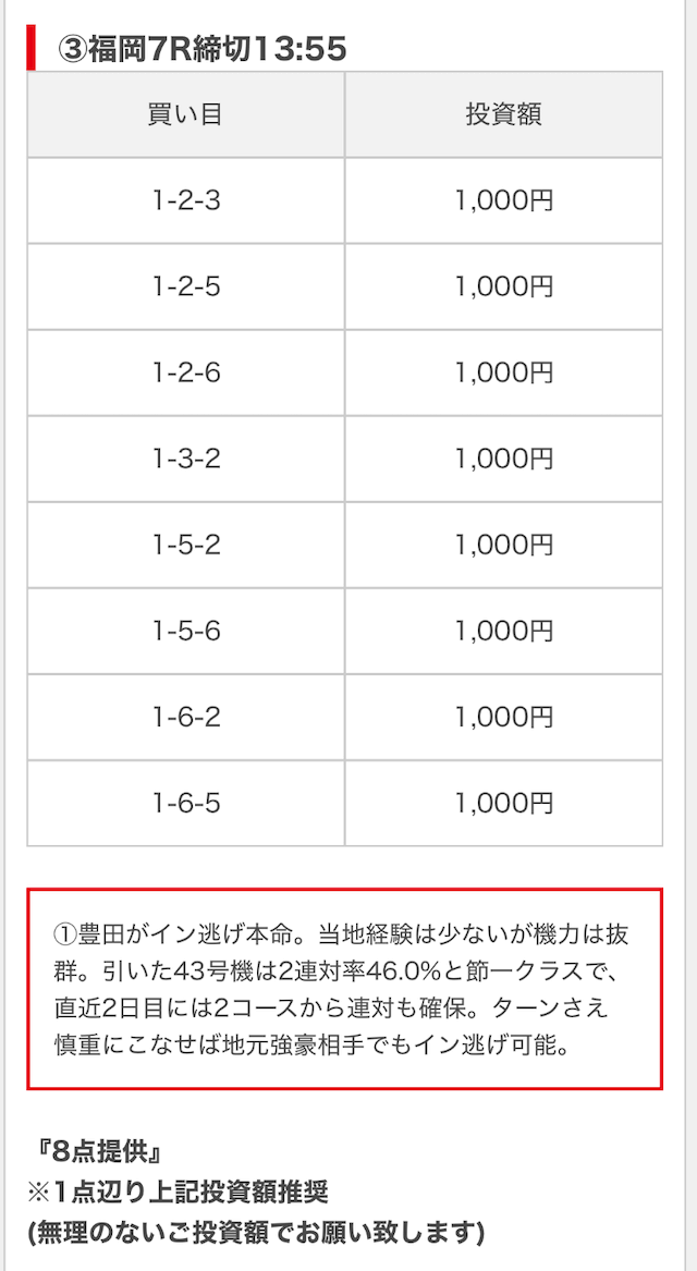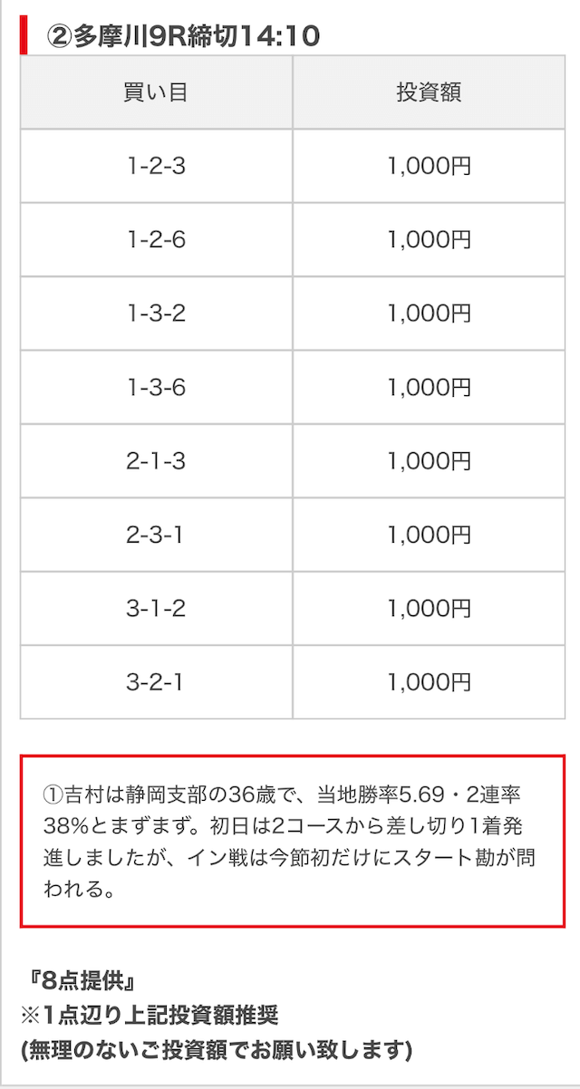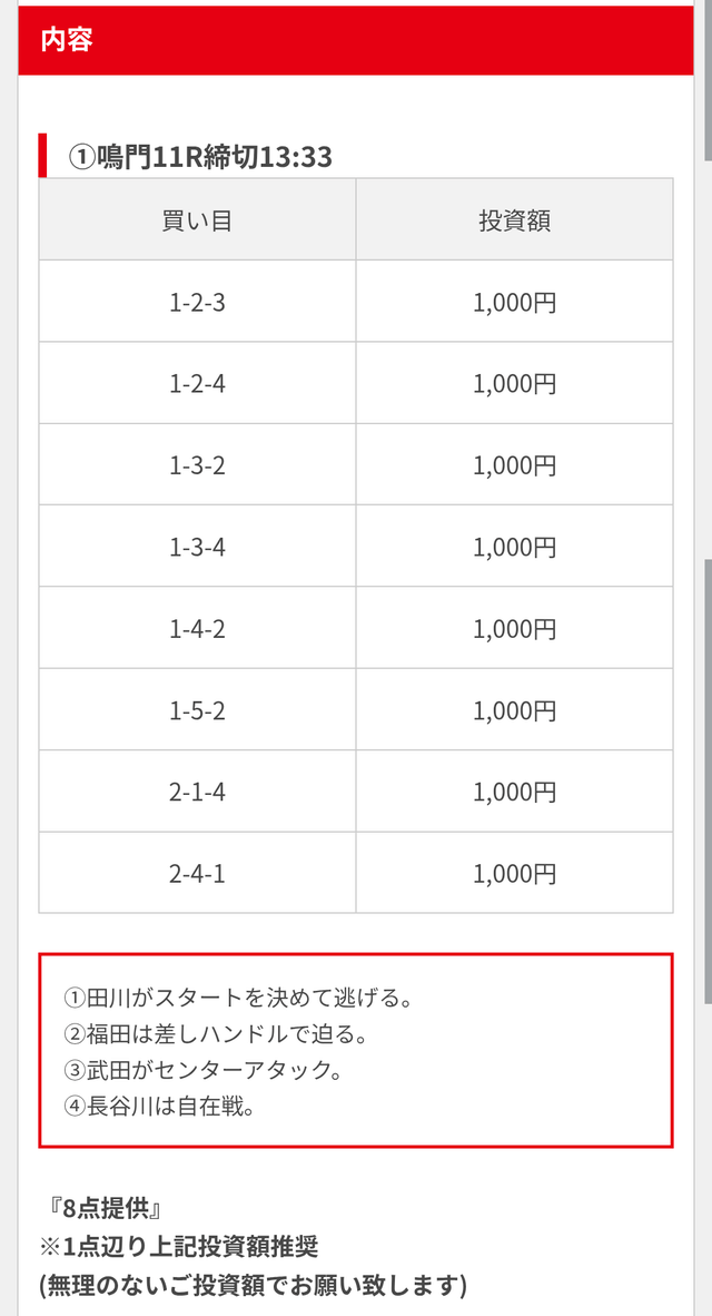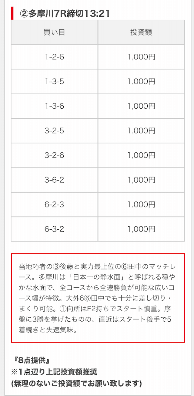 - 買い目に根拠・見解が書かれていて信憑性が高い(無料予想)