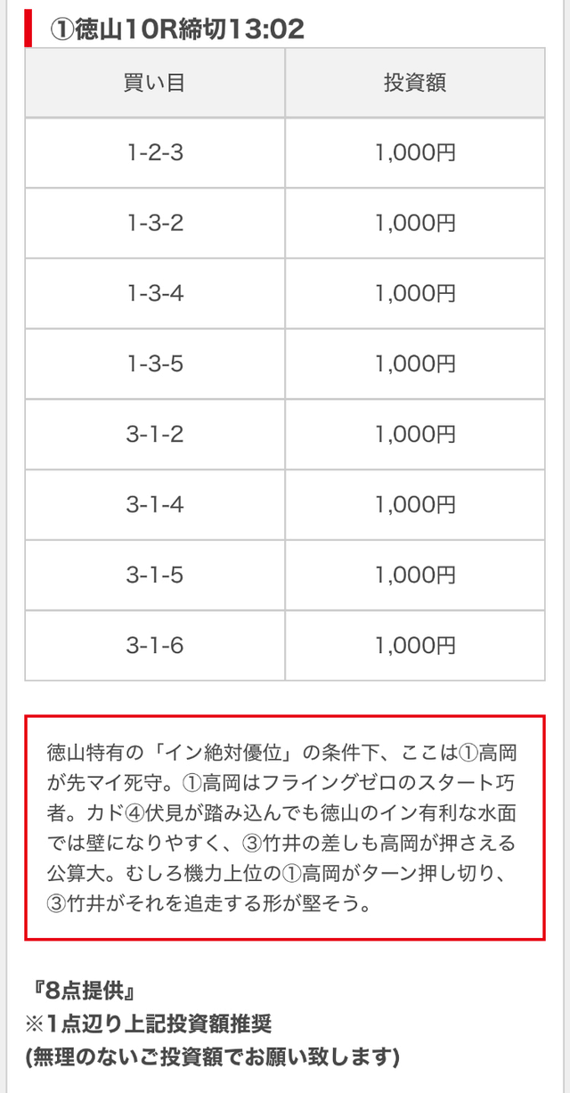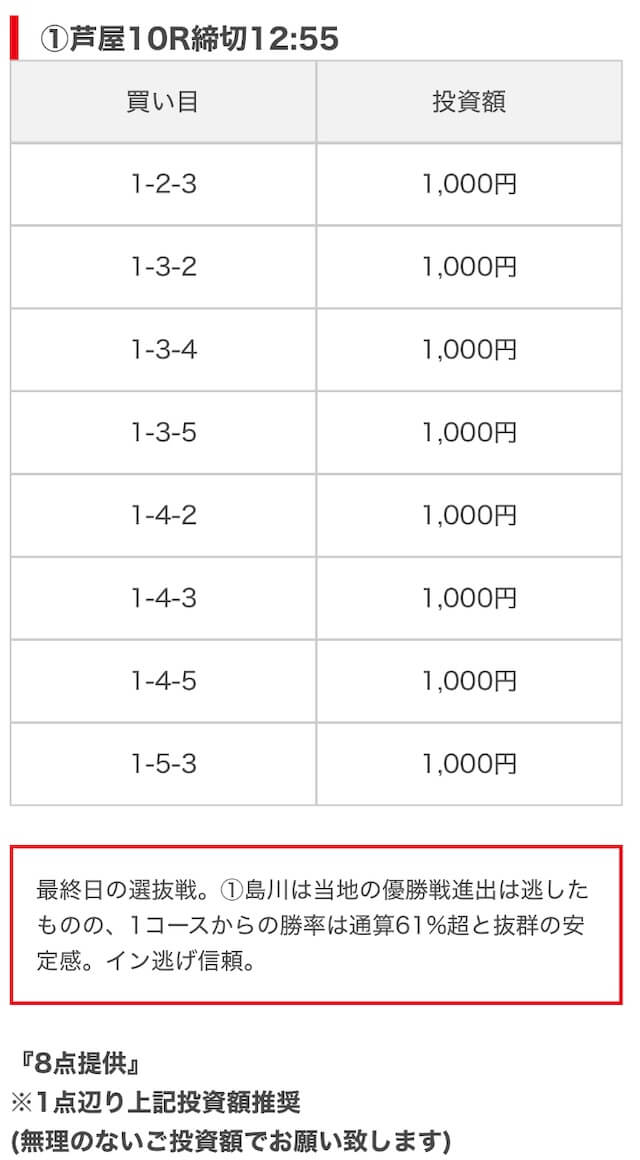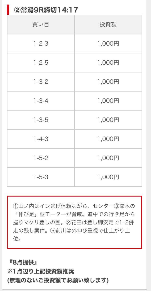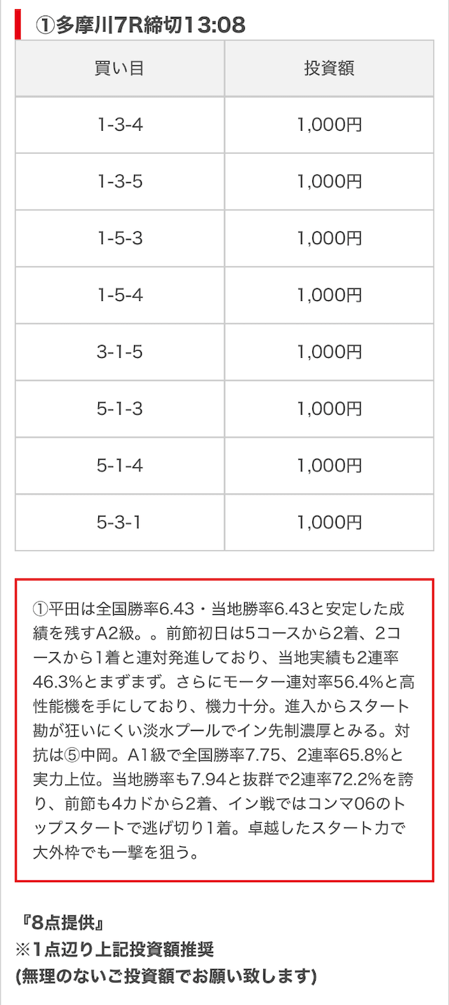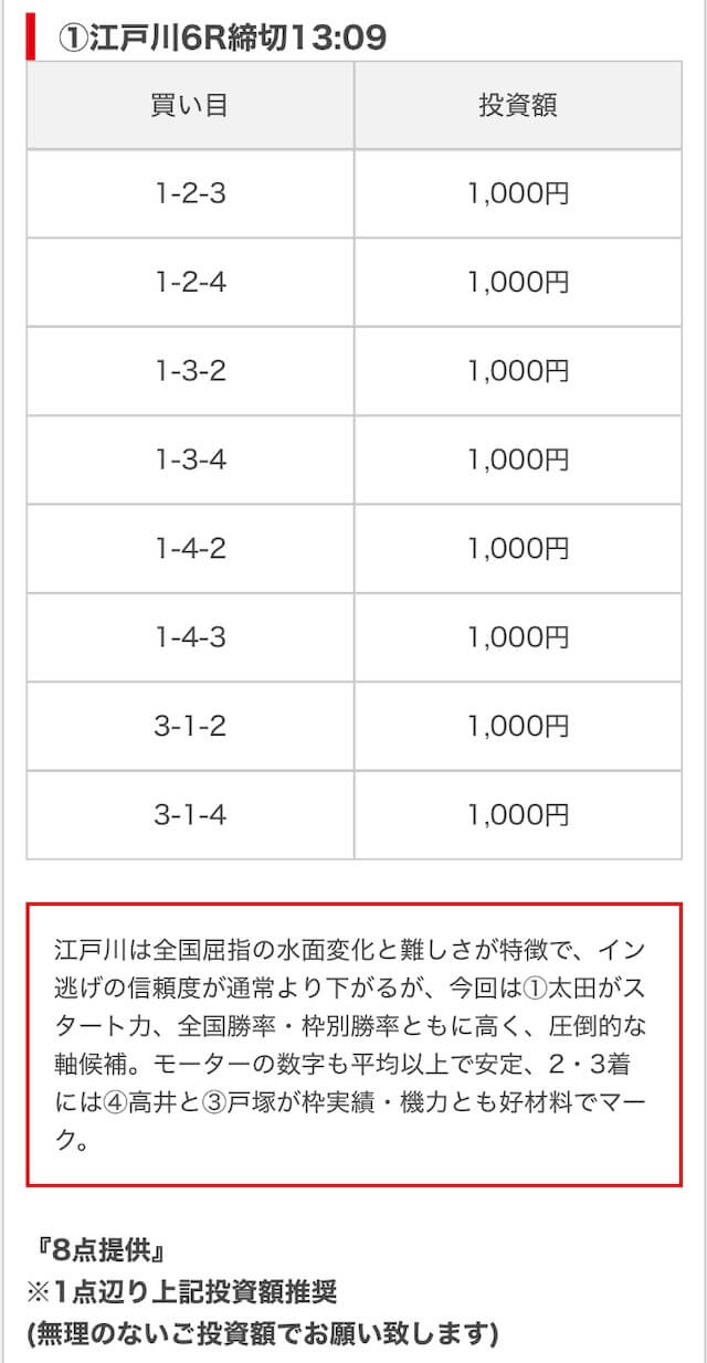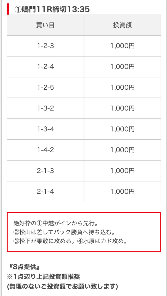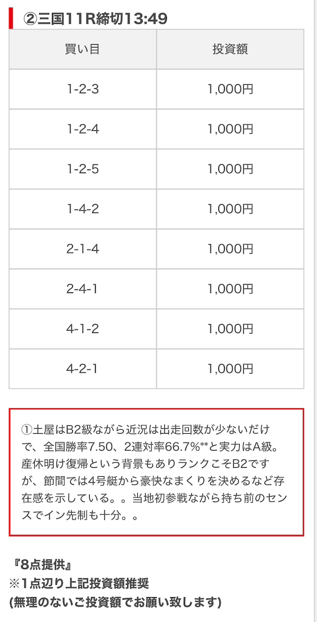 - 買い目に根拠・見解が書かれていて信憑性が高い(無料予想)
