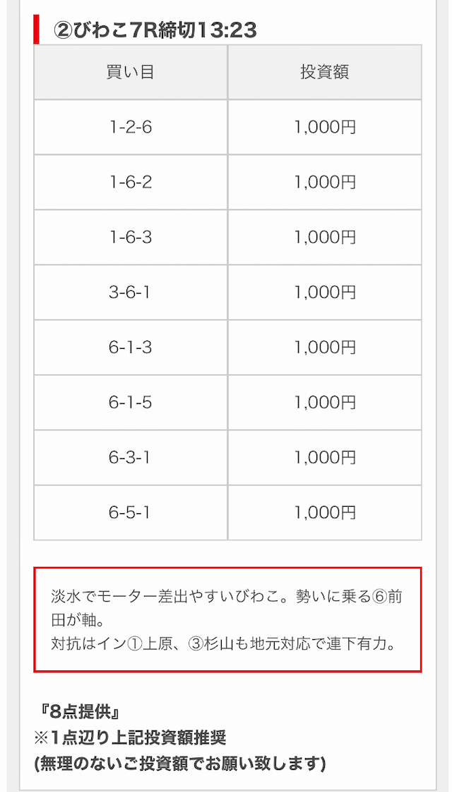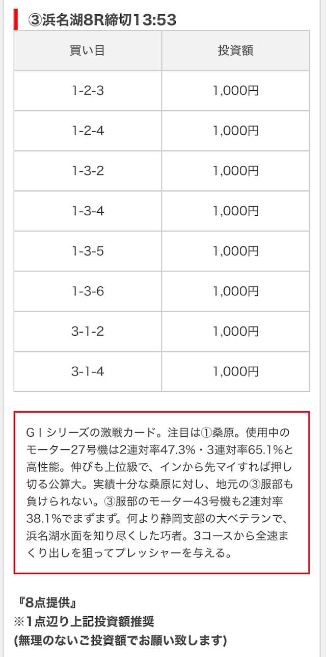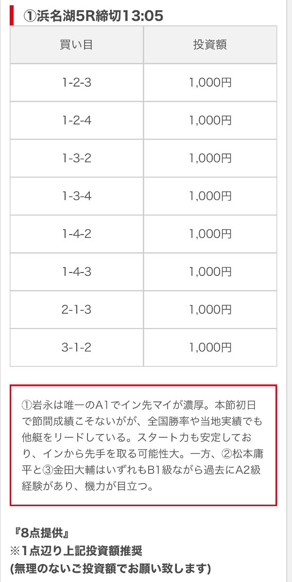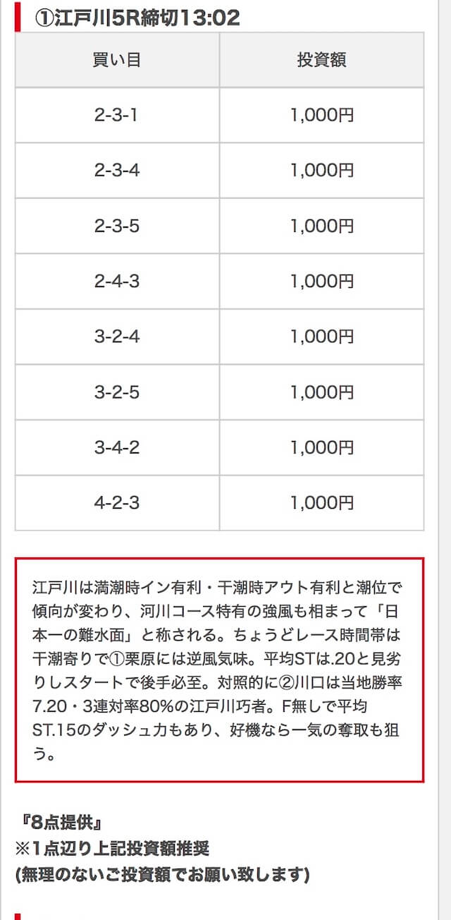 ただ、投資効率という項目が追加されています。有料予想は舟券代に加えて情報料金がかかるので、ユーザーの負担度が考慮されています。※更新頻度は毎日