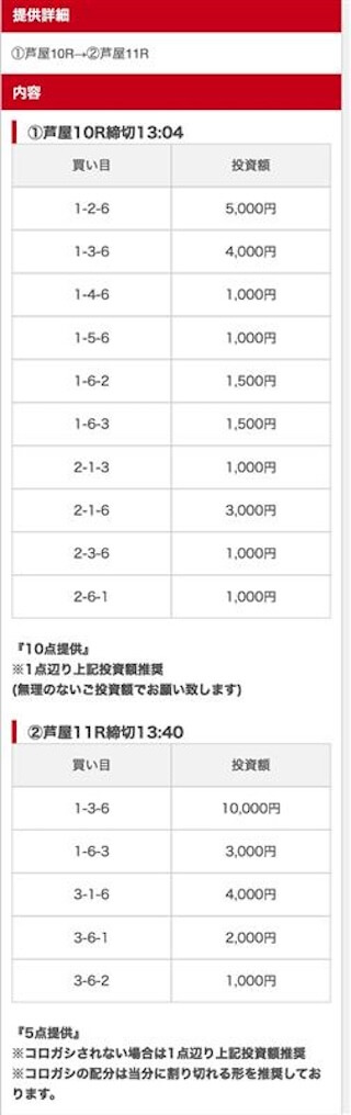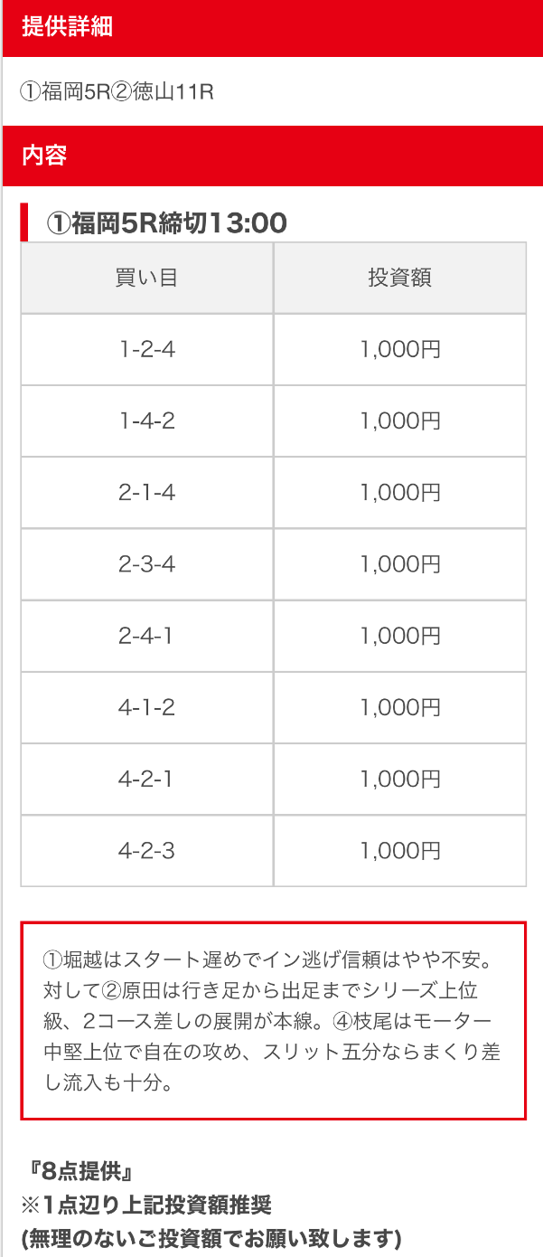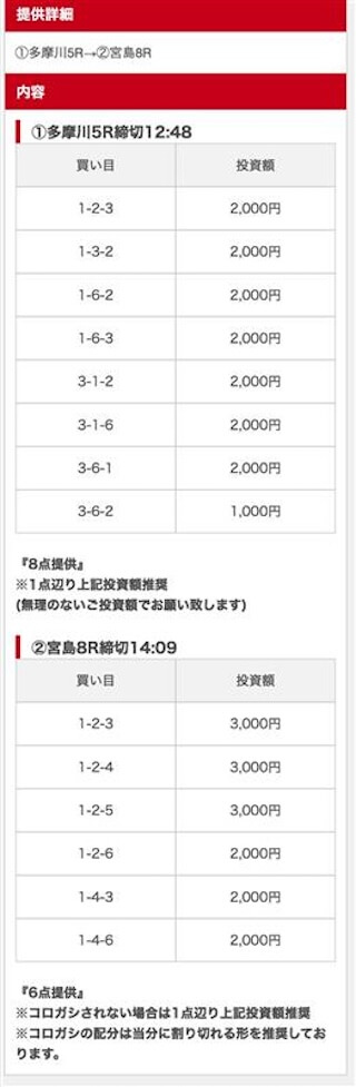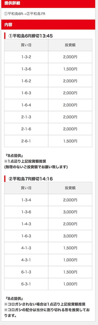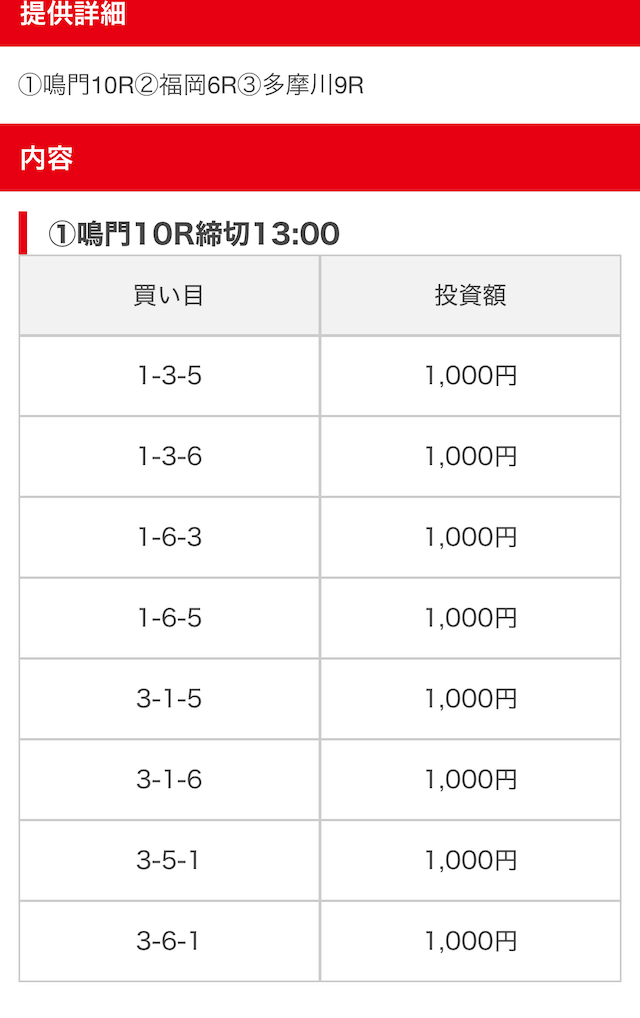 - 公開時間:当日12時30分(毎日2〜4R提供)