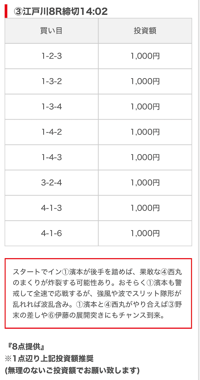 - 荒れる展開を当てられ回収率が高い(無料予想)