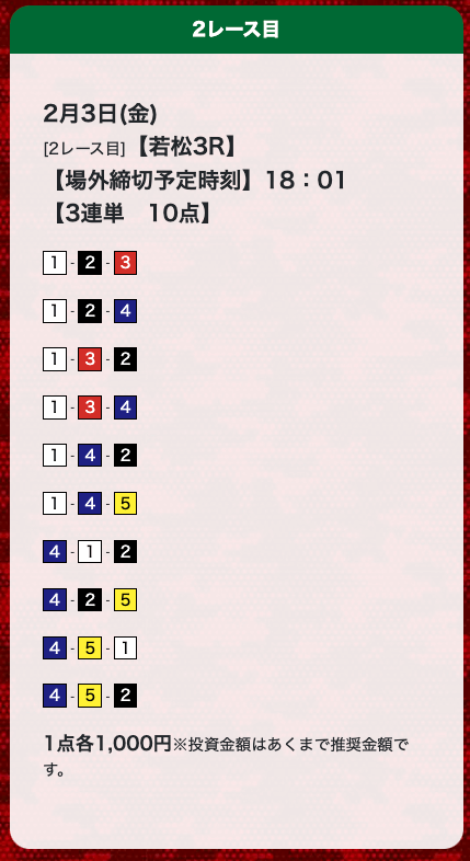 - 約2年間お世話になってまーす!1日4レースも公開されるからめちゃ助かる!収支はつけてないけど、肌感50万円以上は勝ってるんじゃないかなー?投稿日:2024/11/29