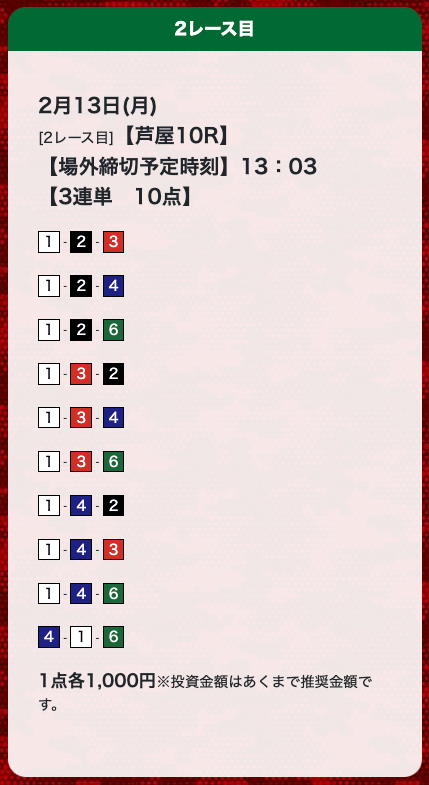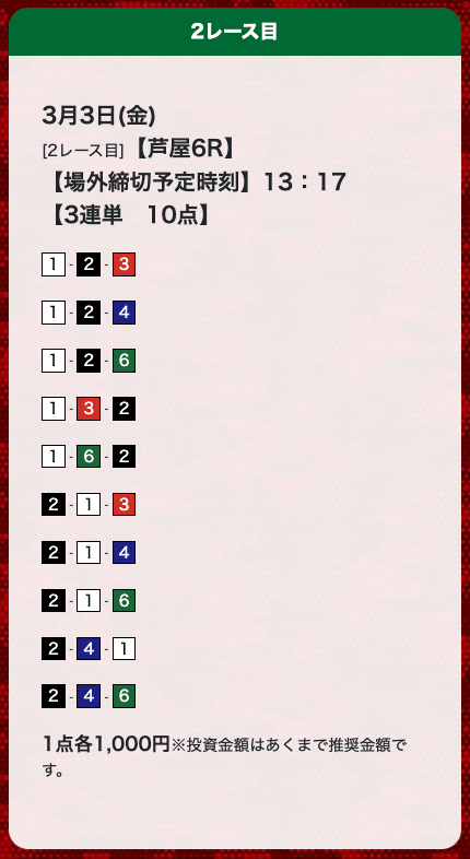 「スタンダード」はコロガシプランなので、実質4レース連続的中です。