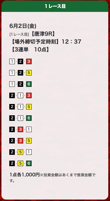 - 多点買いでカバーしてくれるのはいいんですが、点数が増える分、外れた時の損失も大きく感じました。資金が少ない人は厳しいんじゃないかな・・・投稿日:2025/06/11