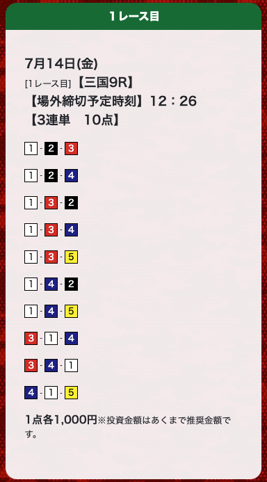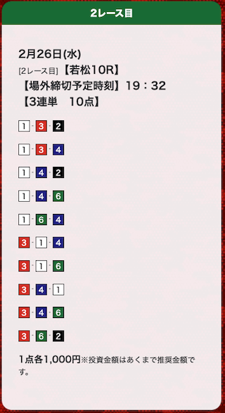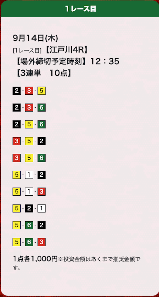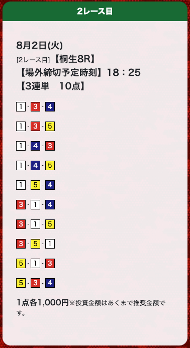 - 平日でもしっかり予想が提供されているのは助かります。仕事終わりに軽く参加して、週末に大きく勝負する、そんなスタイルができるのはありがたいですね。投稿日:2025/09/14