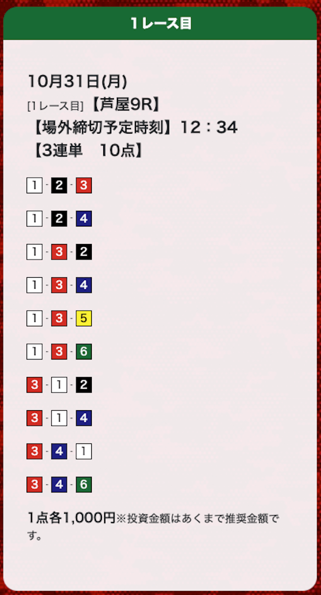 - 「無料予想からでも5万10万を狙える」という評判を聞いて半信半疑でしたが、本当に一度で10万円近い配当を取れました。まぐれかもしれませんが、インパクトが強すぎてファンになりました。投稿日:2025/03/01
