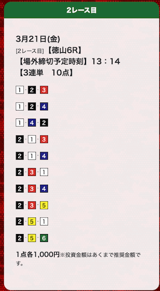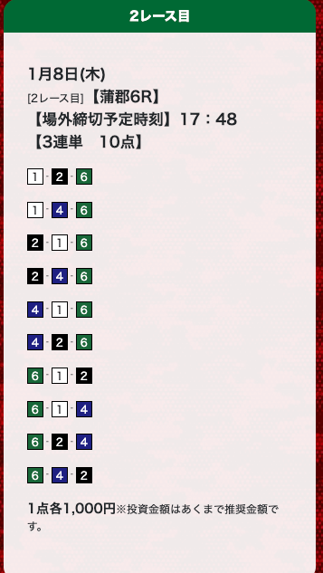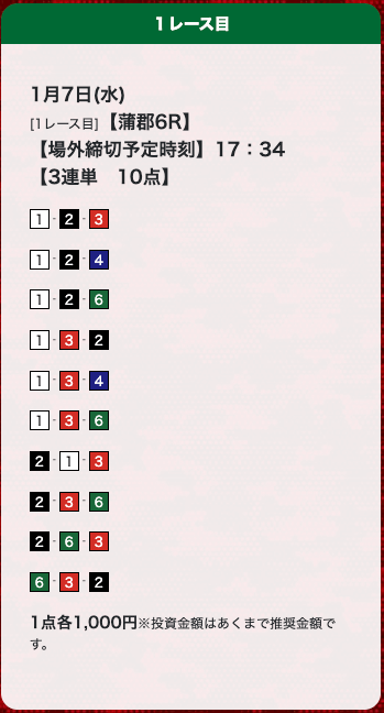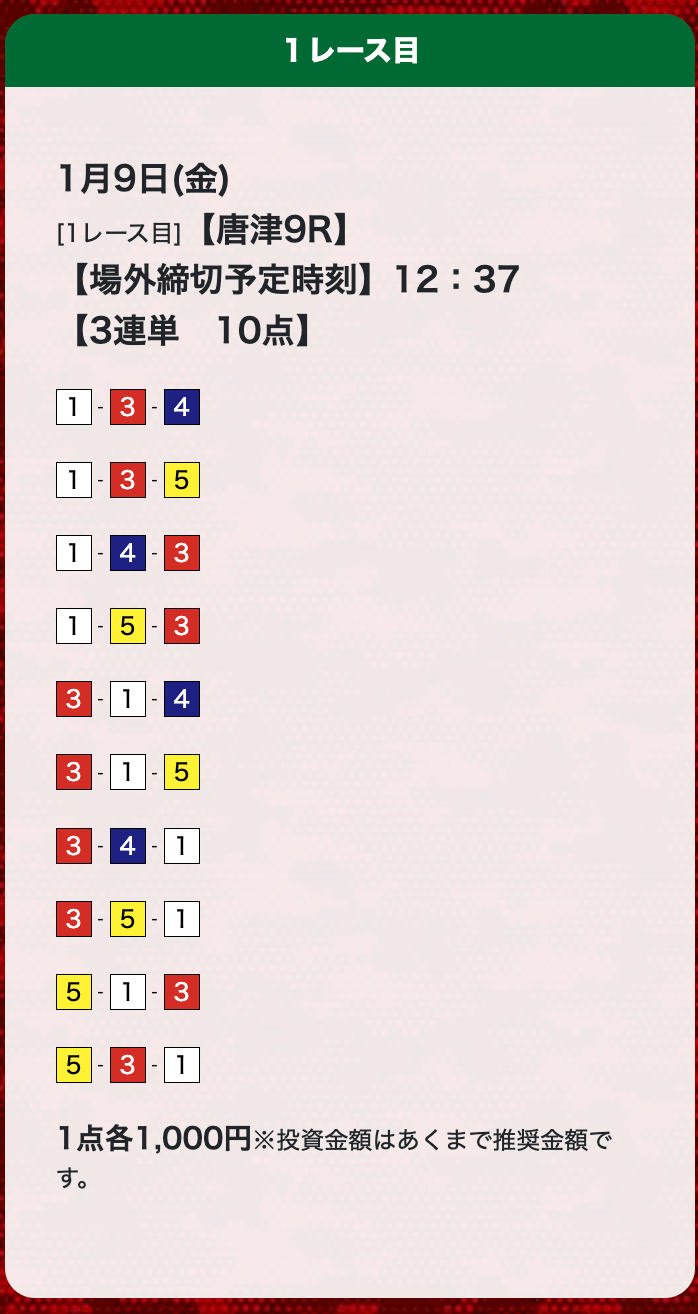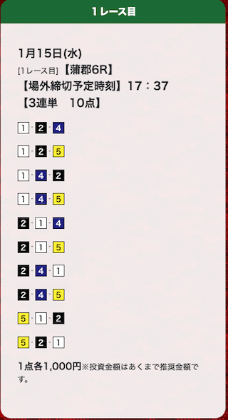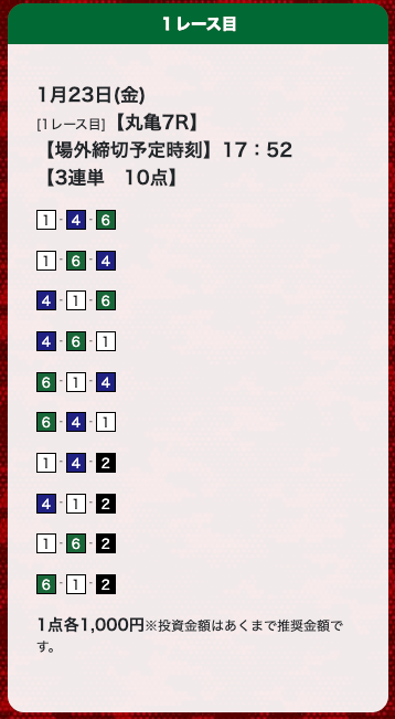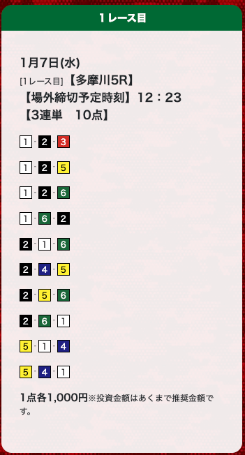 - 評価みて登録しました。確かに当たりました。 昨日は4レース3勝。今日も4レース3勝です。投稿日:2023/01/12