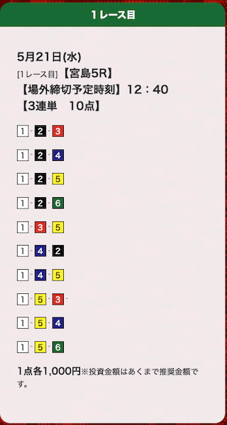 - 多点買いが基本のスタイルなので、最初は「点数多いな」と感じましたが、実際やってみるとトータルでしっかり回収できる。1回で大きく負けることが少なく、初心者の自分でも安心して続けられています。投稿日:2025/08/30