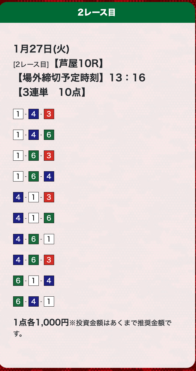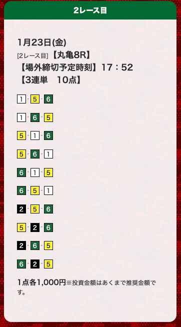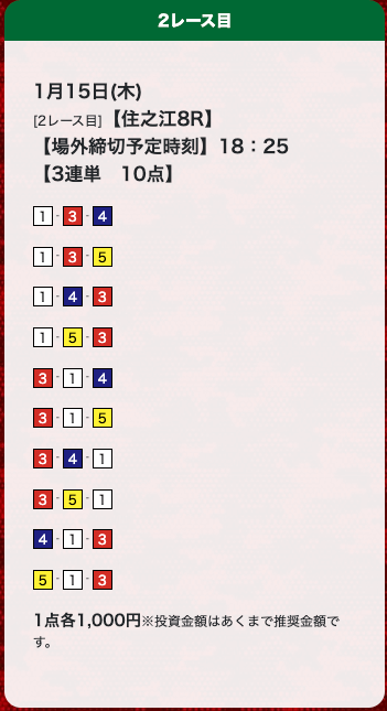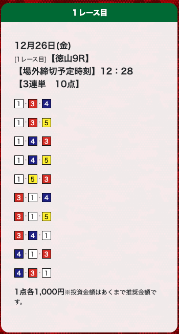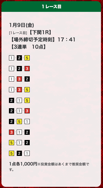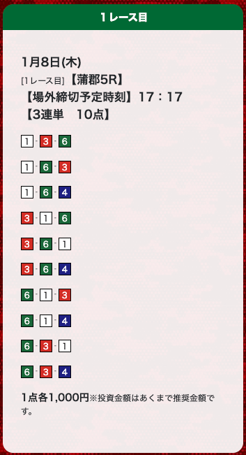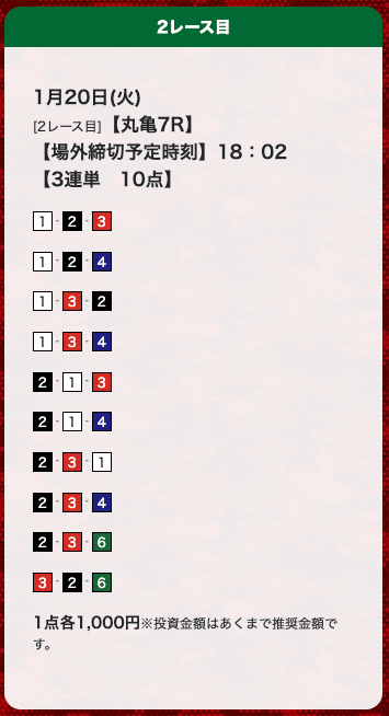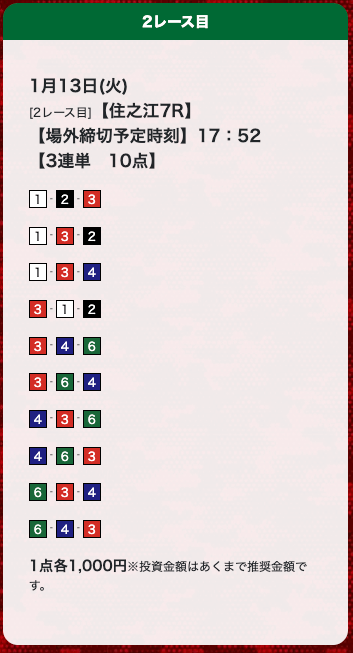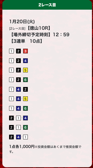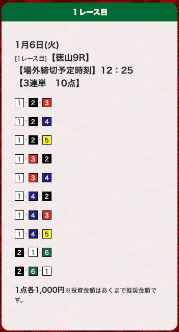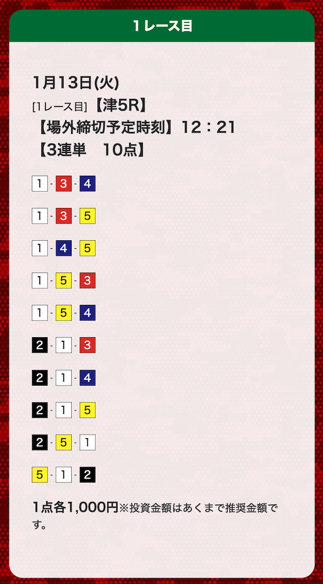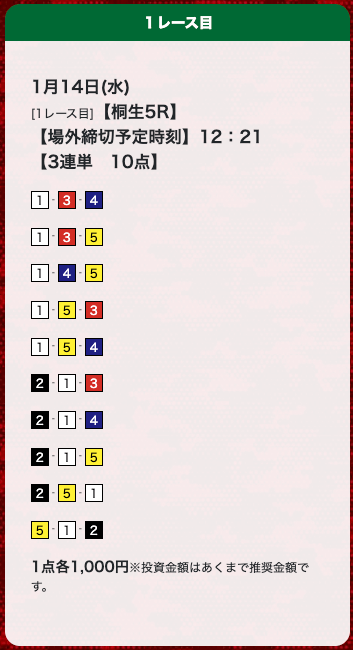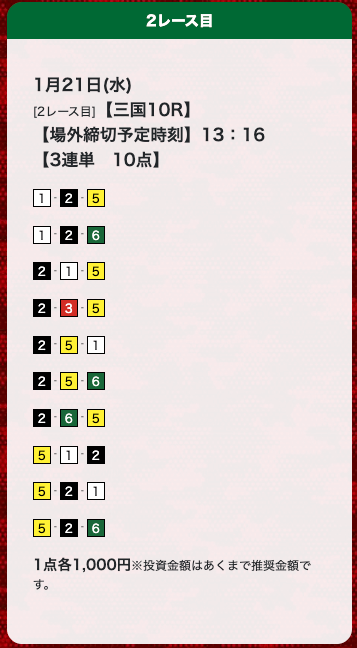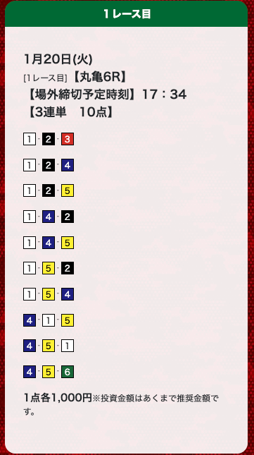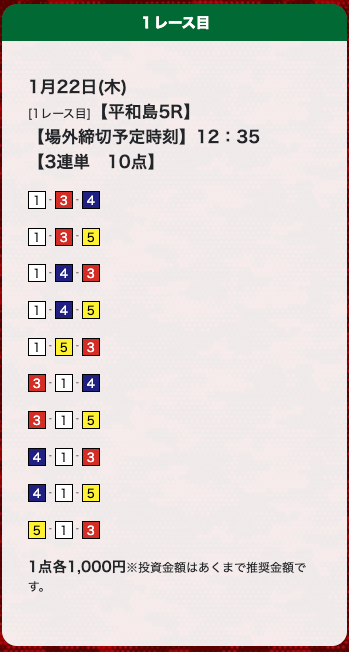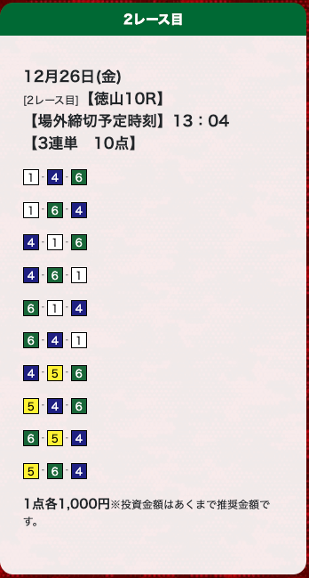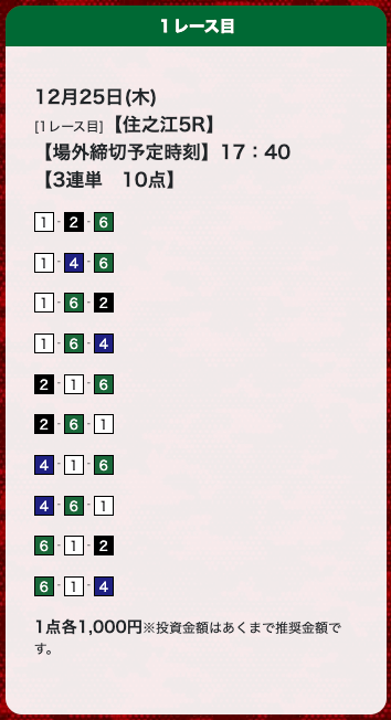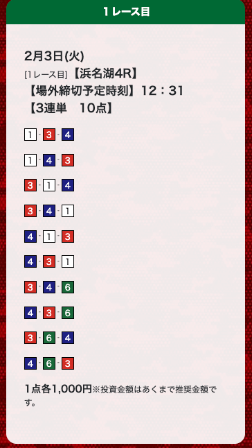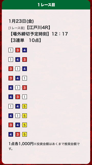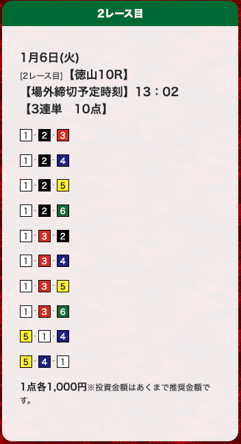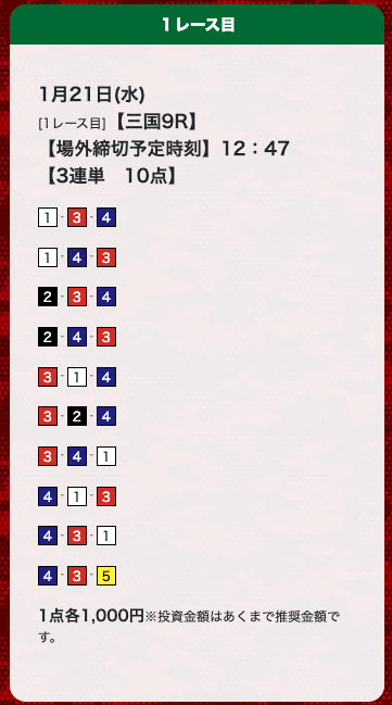 - 券種:3連単(10点)