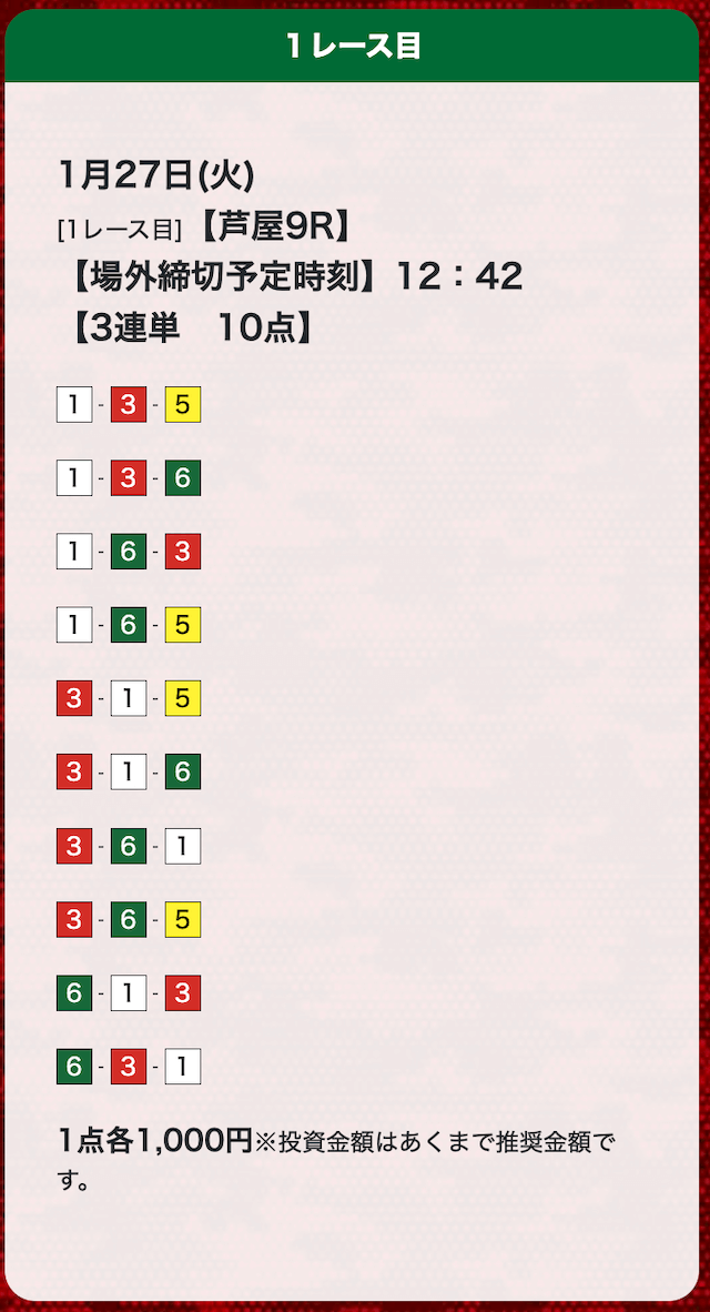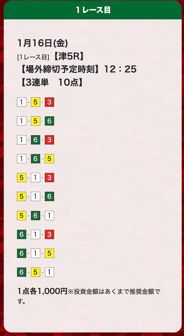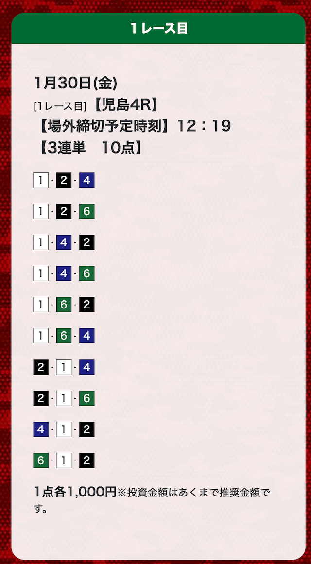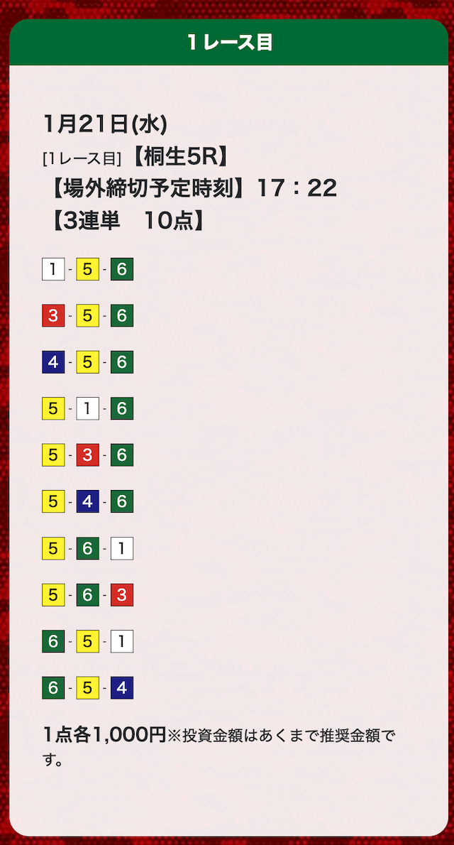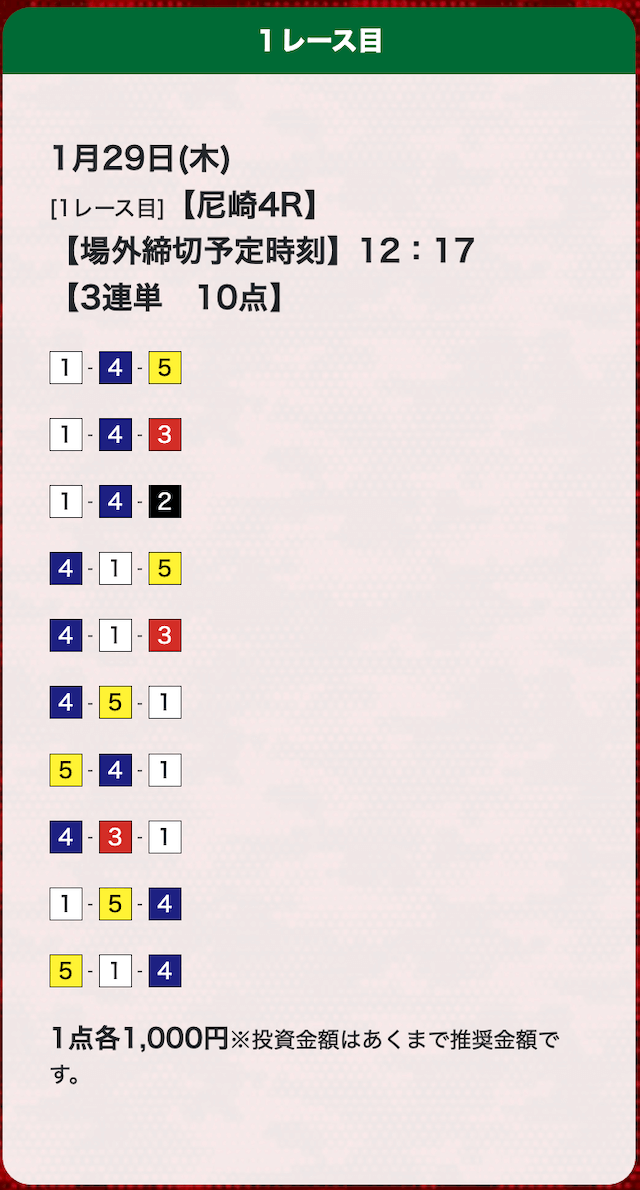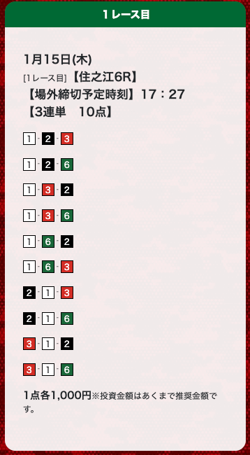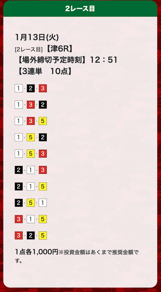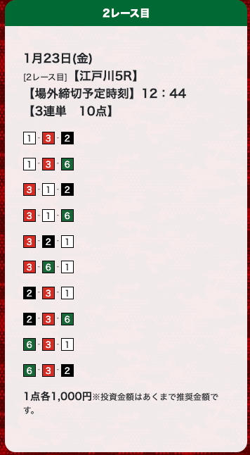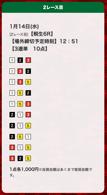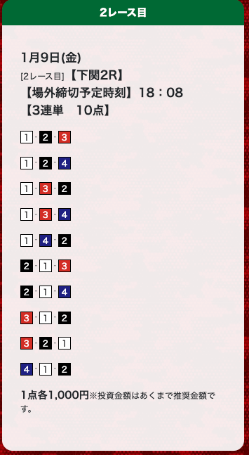 - 券種:3連単(10点)