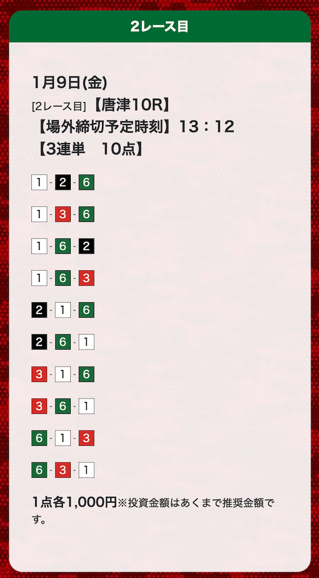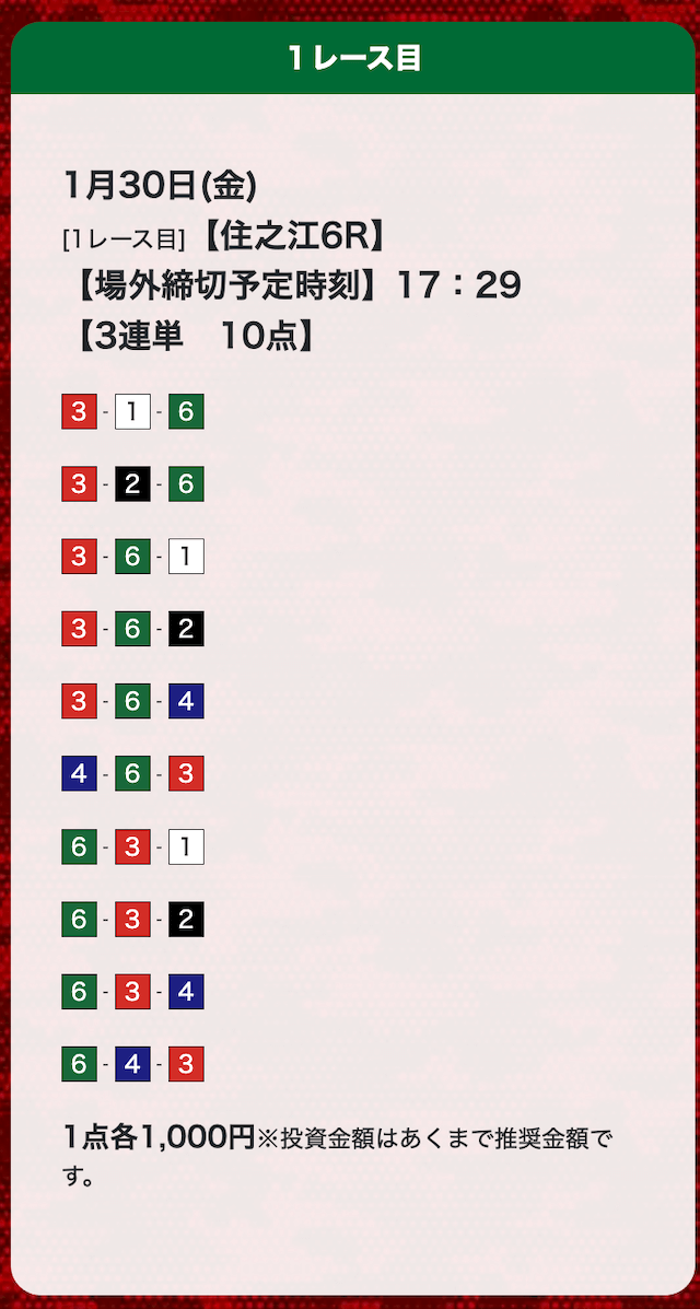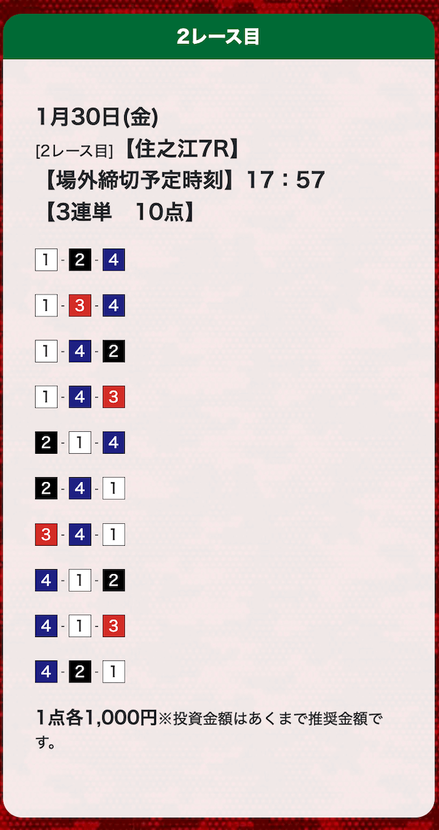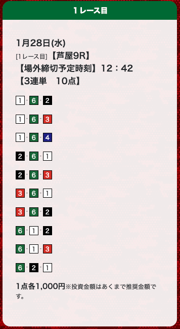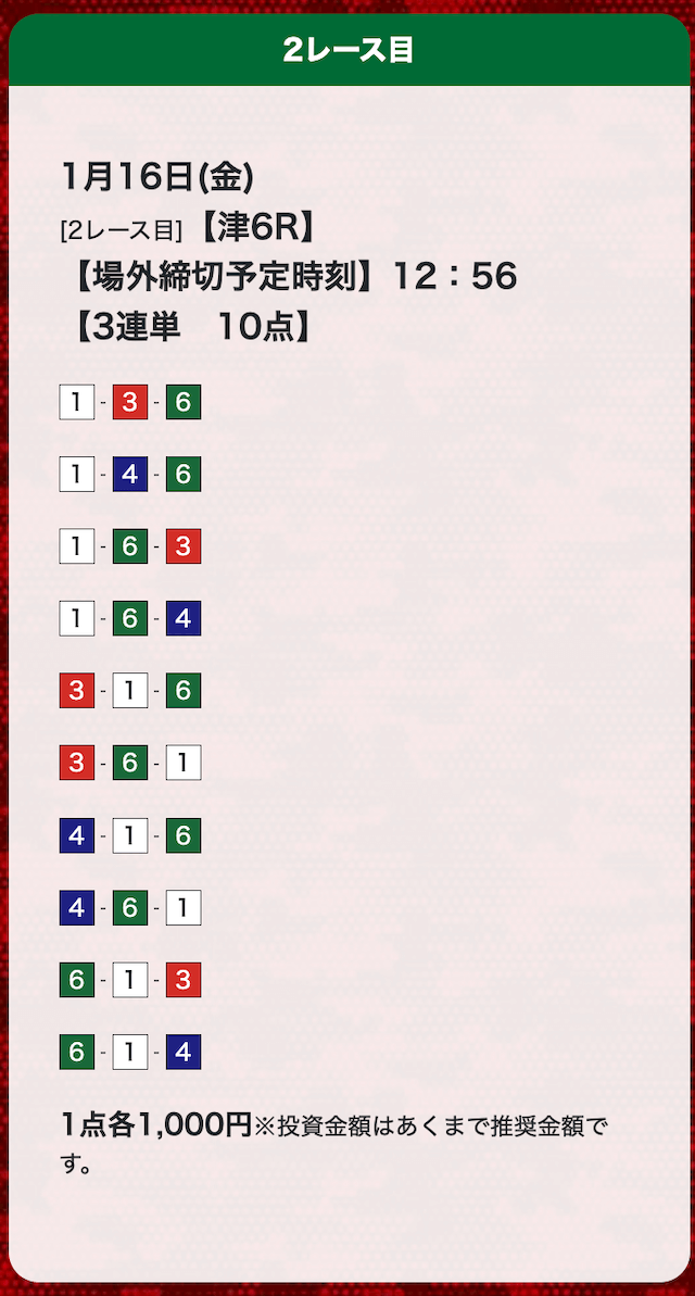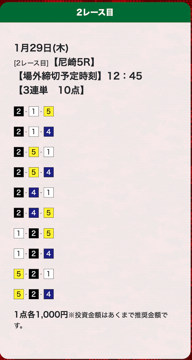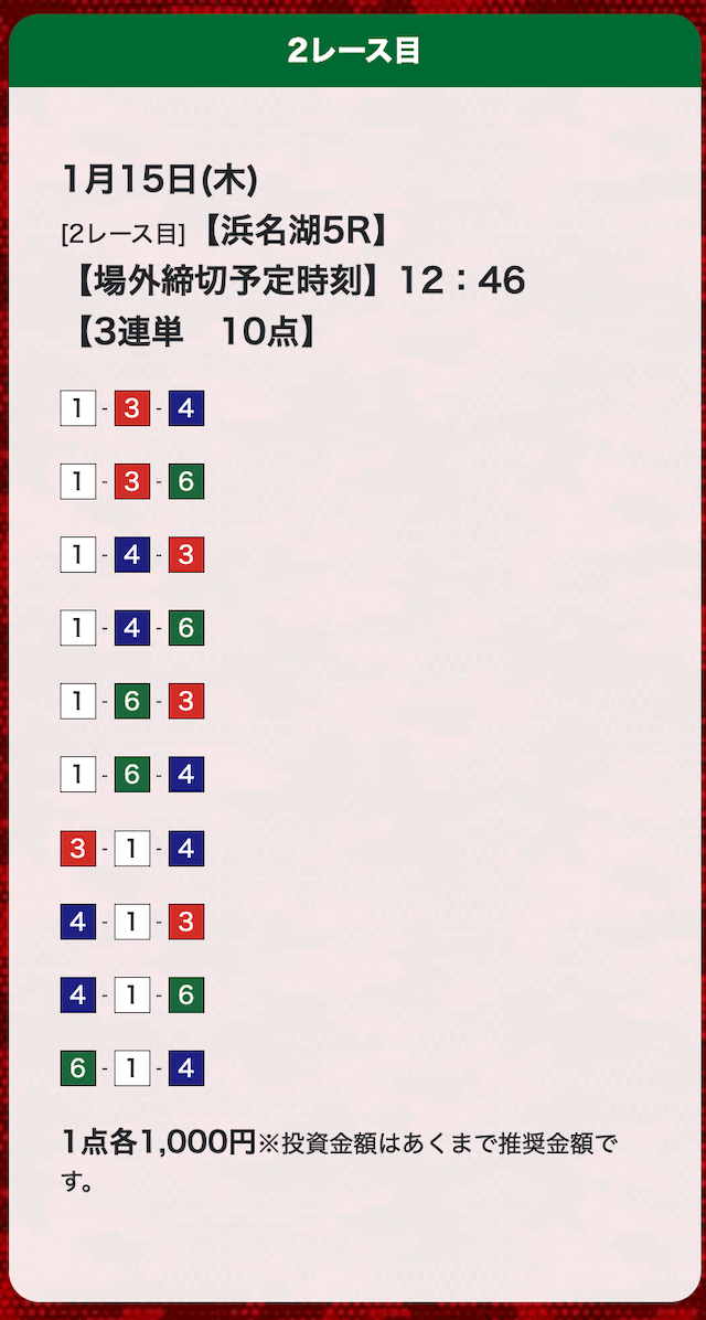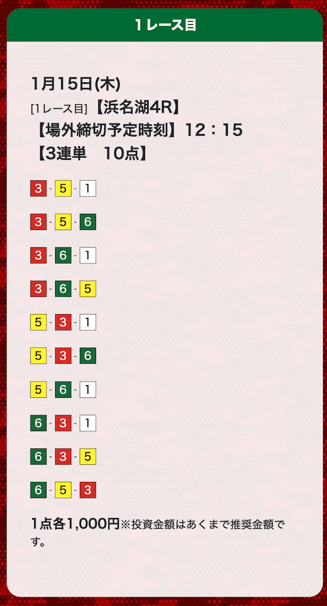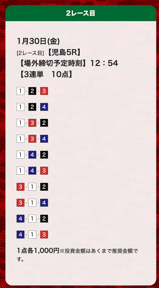 - 券種:3連単(10点)