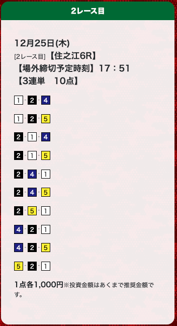 - 老舗サイトで、2年ほど無料予想・有料予想に参加していますが、1ヶ月で10万円はコンスタントに稼げています。投稿日:2025/12/12