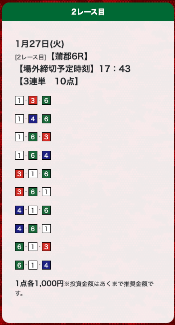 - 多点買いで万舟もカバーできる(無料予想)