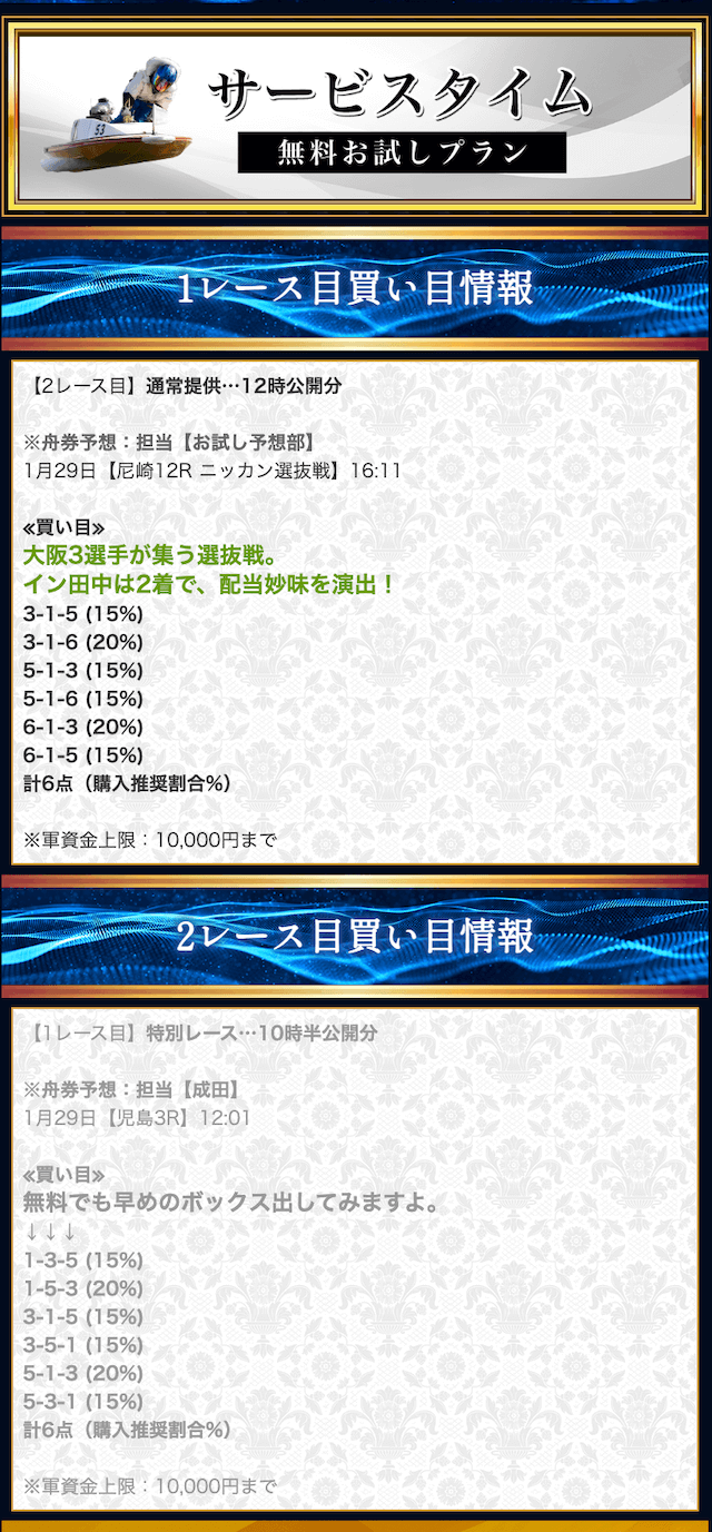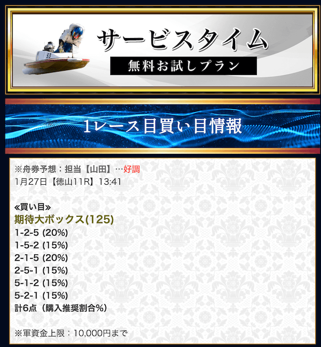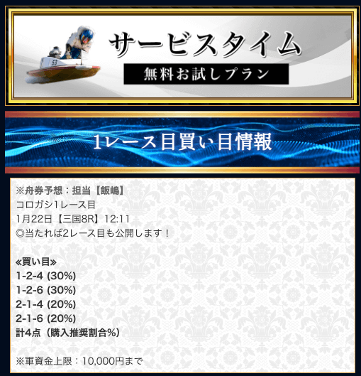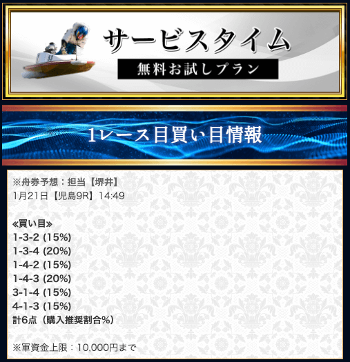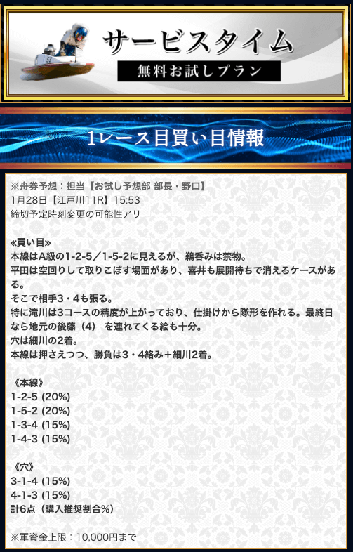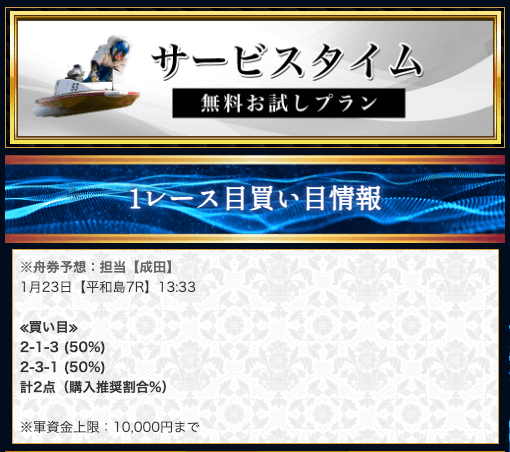 競艇戦線では、有料予想も参加しています。