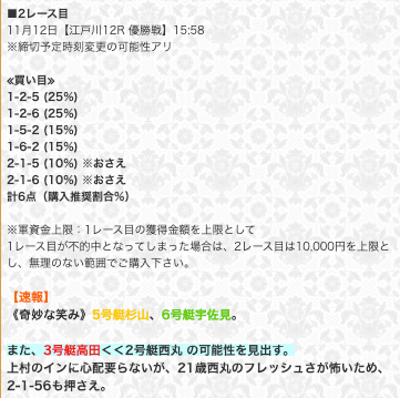 - 情報料金が抑えられていて資金効率が◎(有料予想)
