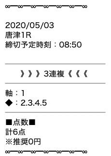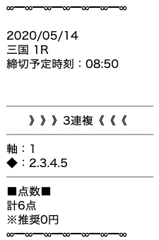 | ルールその① | 公開された無料予想を指示通りに購入します。 | ||
