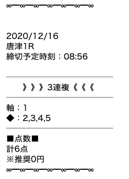 | 12/16 唐津1R | ⭕ | +6,500円 | ||