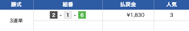 なので、3連単での予想がセオリーになるのですが、今回提供された予想は当てやすいがオッズの低い3連複です。