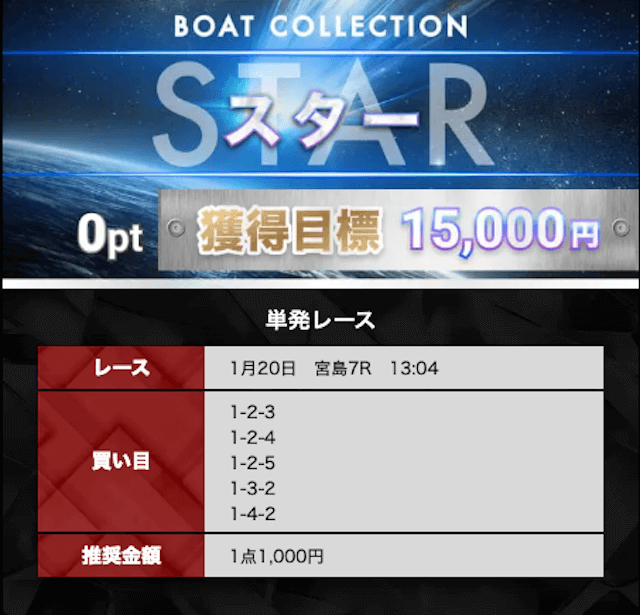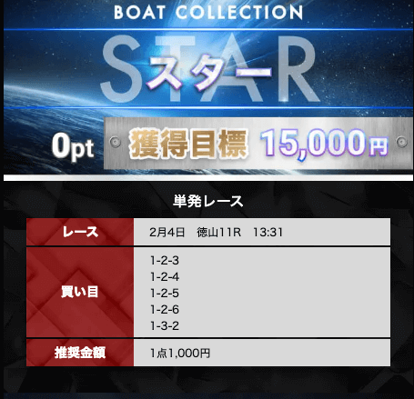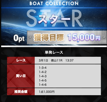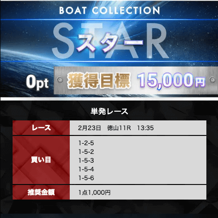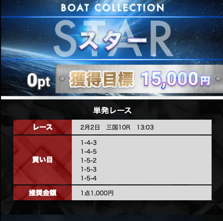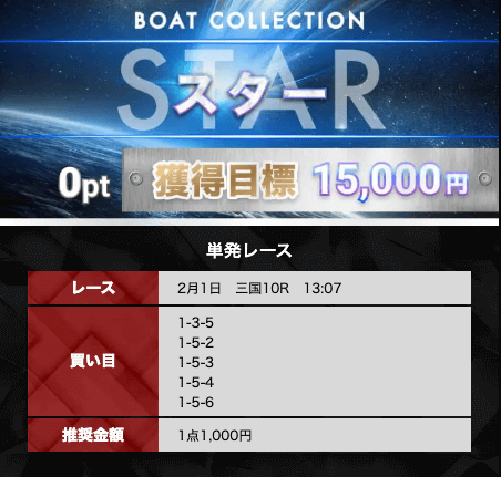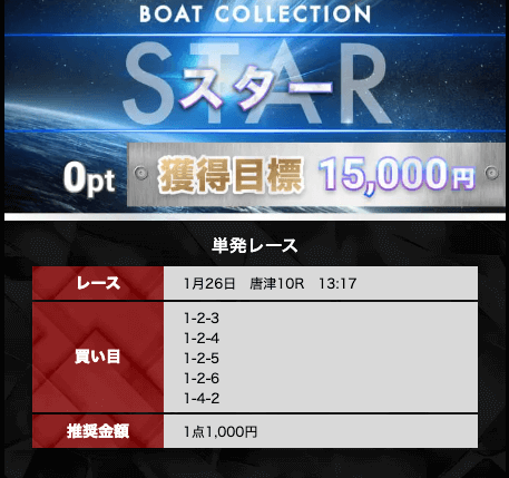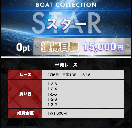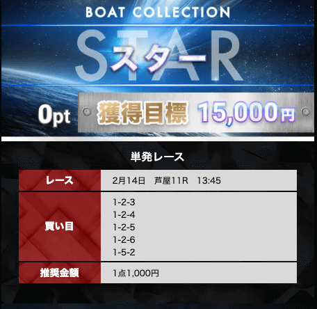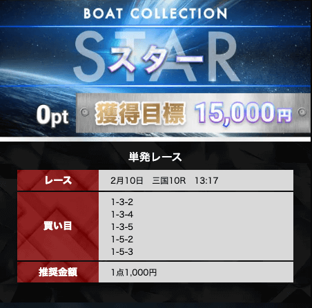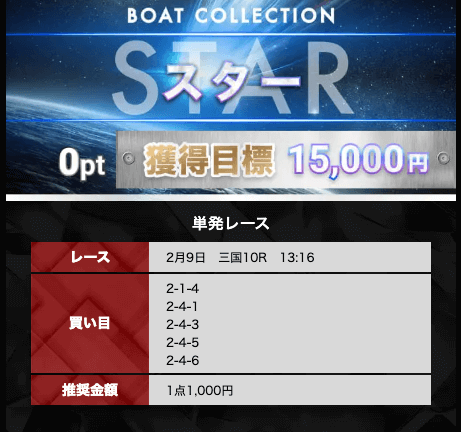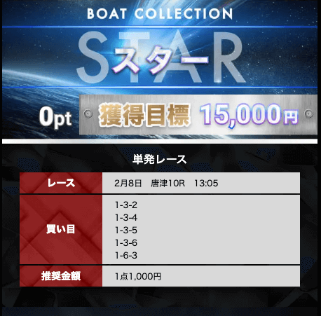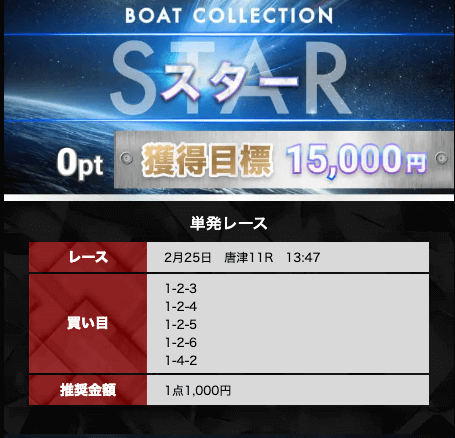 - ボートコレクションは「無料予想」に参加して「マーキュリー」「ヴィーナス」の低額プランを中心に参加すれば、リスク無く大金を掴めるので、オススメかな。周りもそんな感じで使っているよ。投稿日:2025/06/20