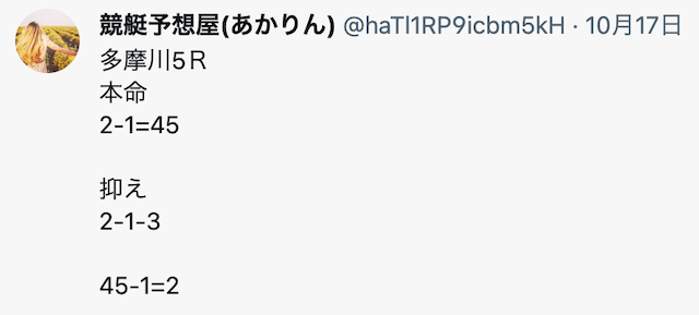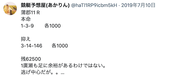 競艇予想屋あかりんのTwitterでは主に無料予想を公開しています。