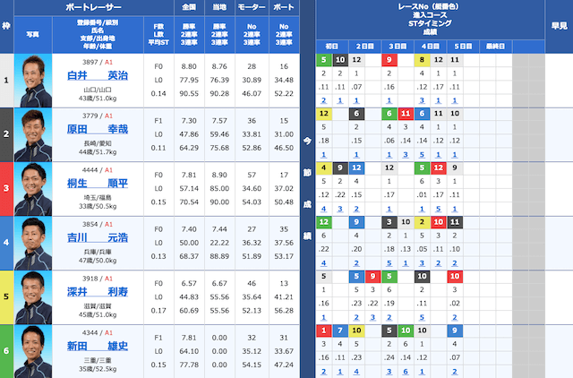①コースは直近の成績がちょっとおかしいレベルで良い白井英治選手。