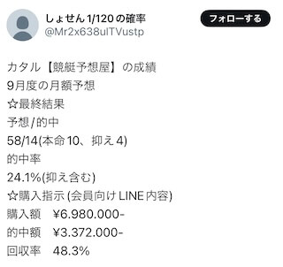 自身をネット競艇予想屋の元祖と謳っており、SNSのフォロワーもかなり多いです。